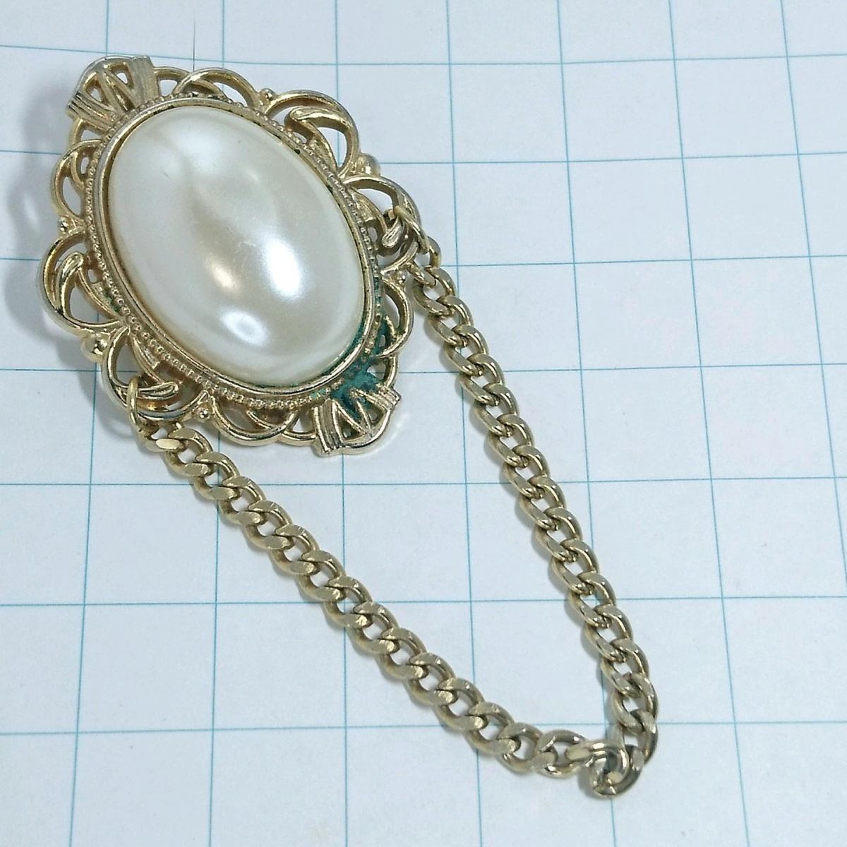 送料無料)ビンテージ☆パール フェイク☆定番☆アンティークブローチ A05091