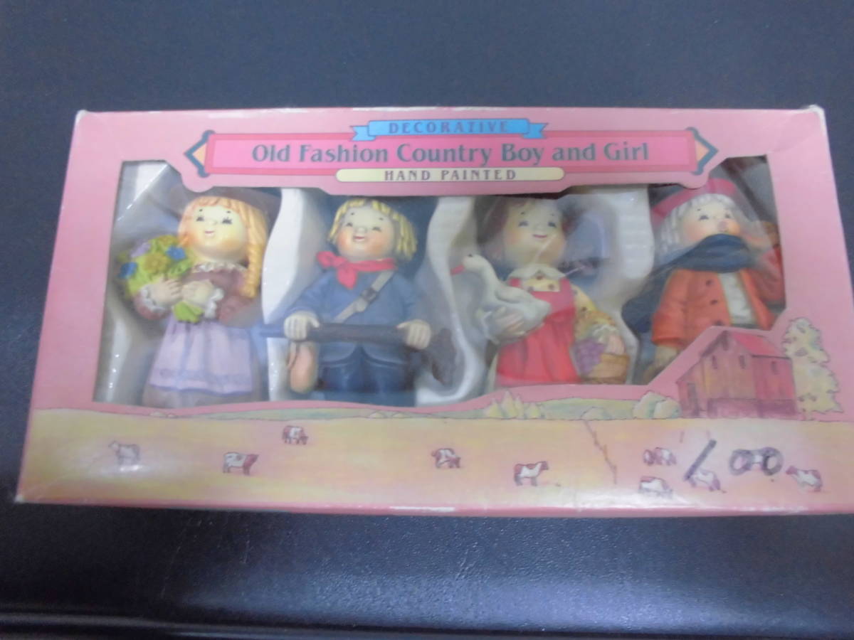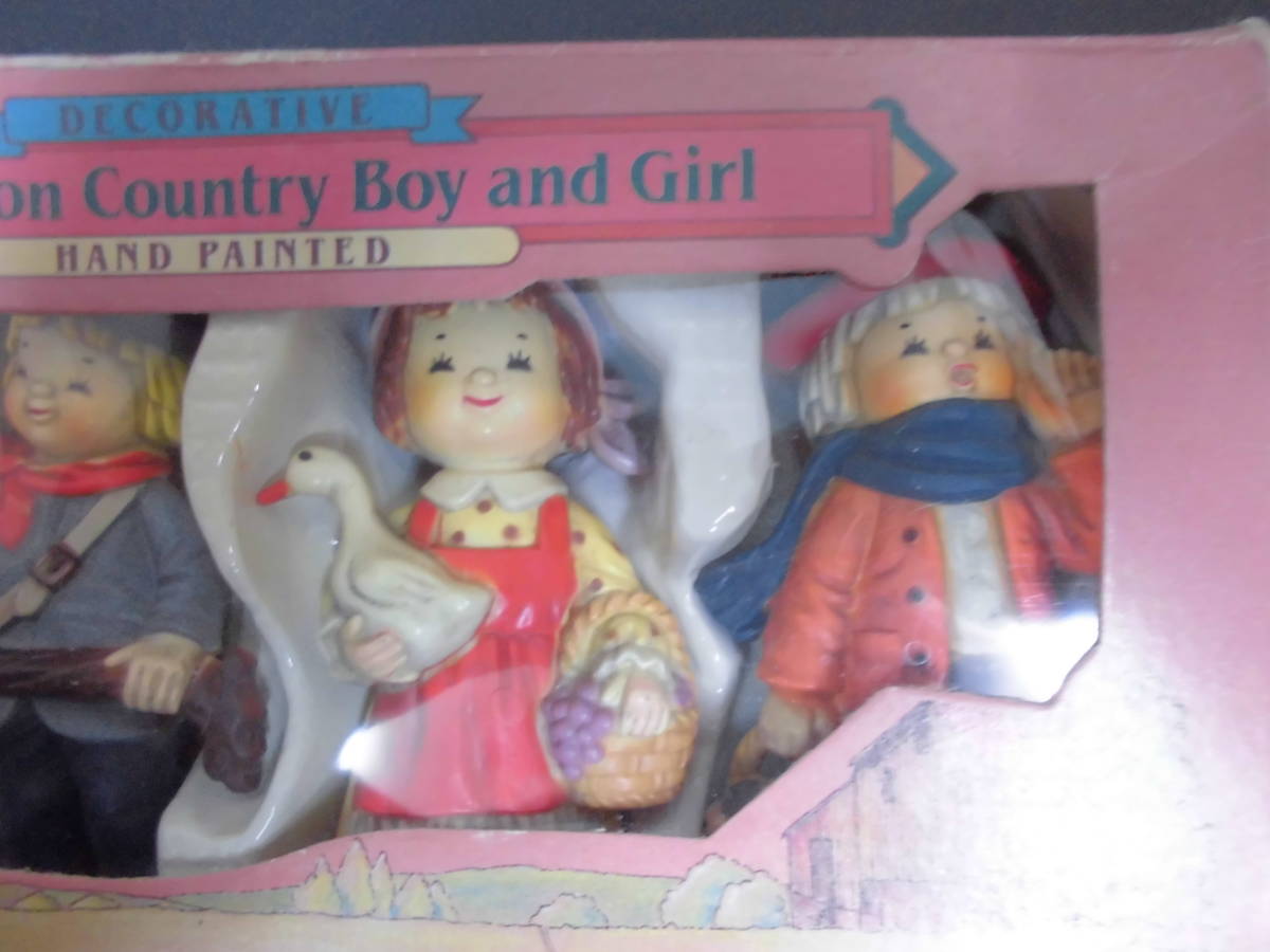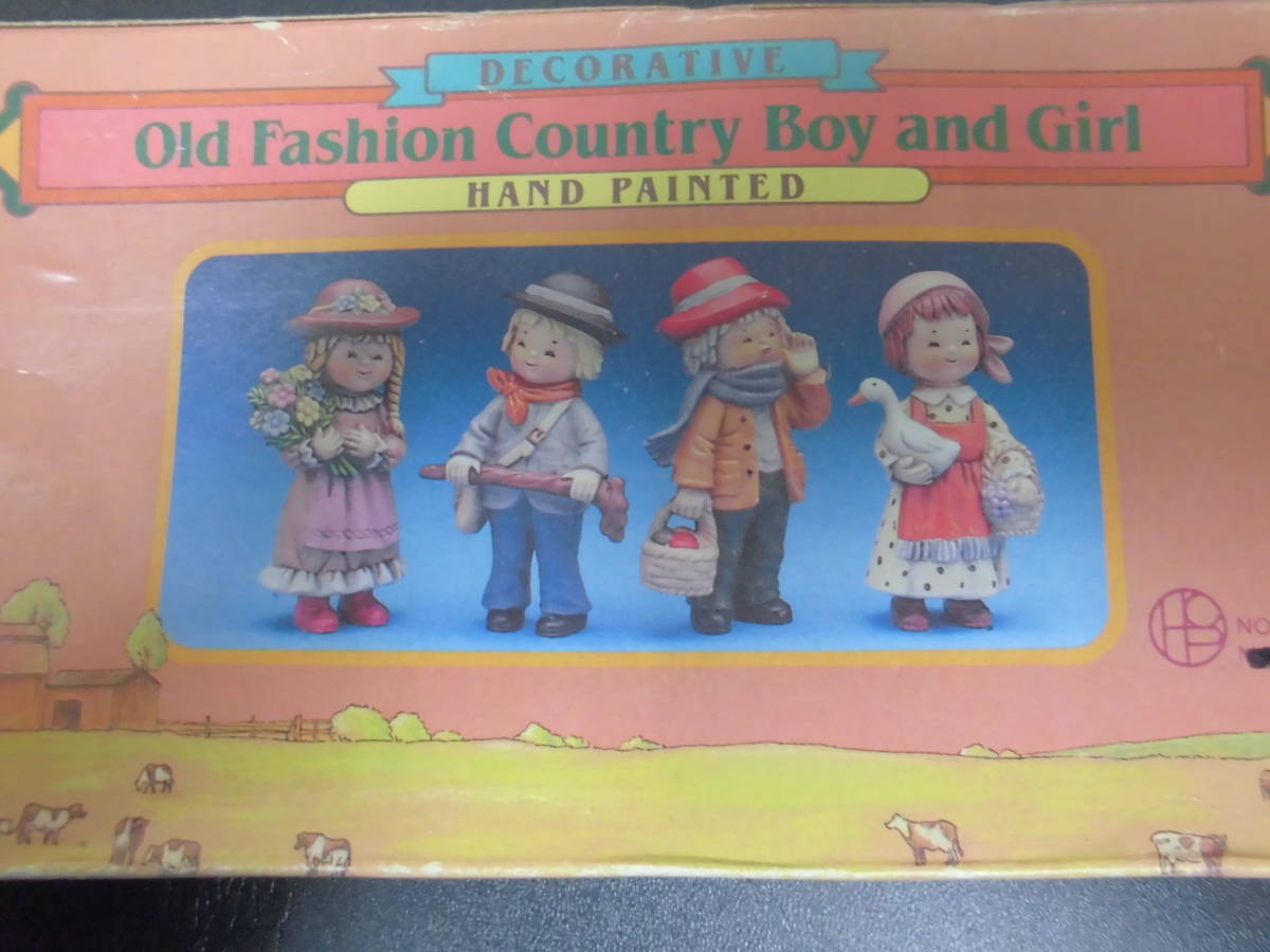 (ハンドペイント)のオールドファッション少年&少女 4体です。