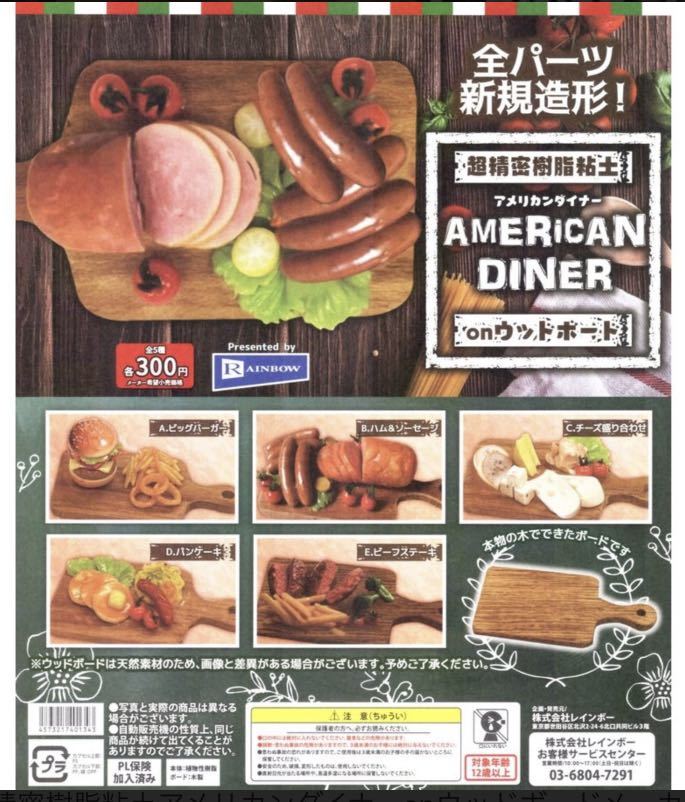★ミニチュアフィギュア★アメリカンダイナー onウッドボード 超精密樹脂粘土 ガチャガチャ パンケーキ