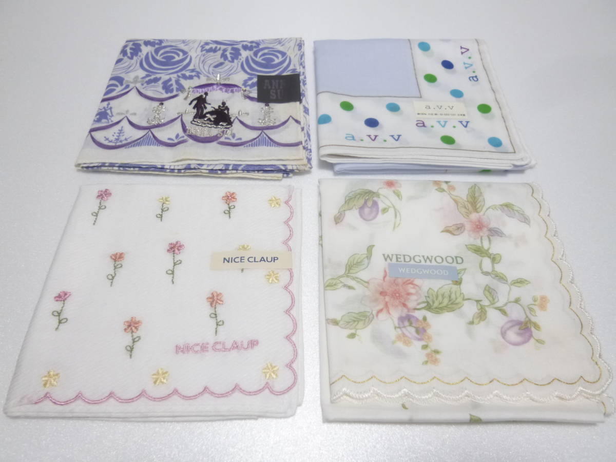 | ウェッジウッド WEDGWOOD 1枚 ・ナイスクラップ NICE CLAUP 1枚・アーヴェヴ a.v.v 1枚 ・アナスイ ANNA SUI 1枚 ハンカチ 4枚セット 新品!! | |