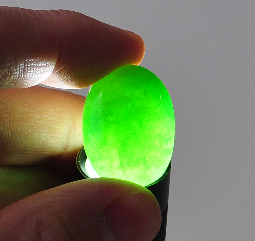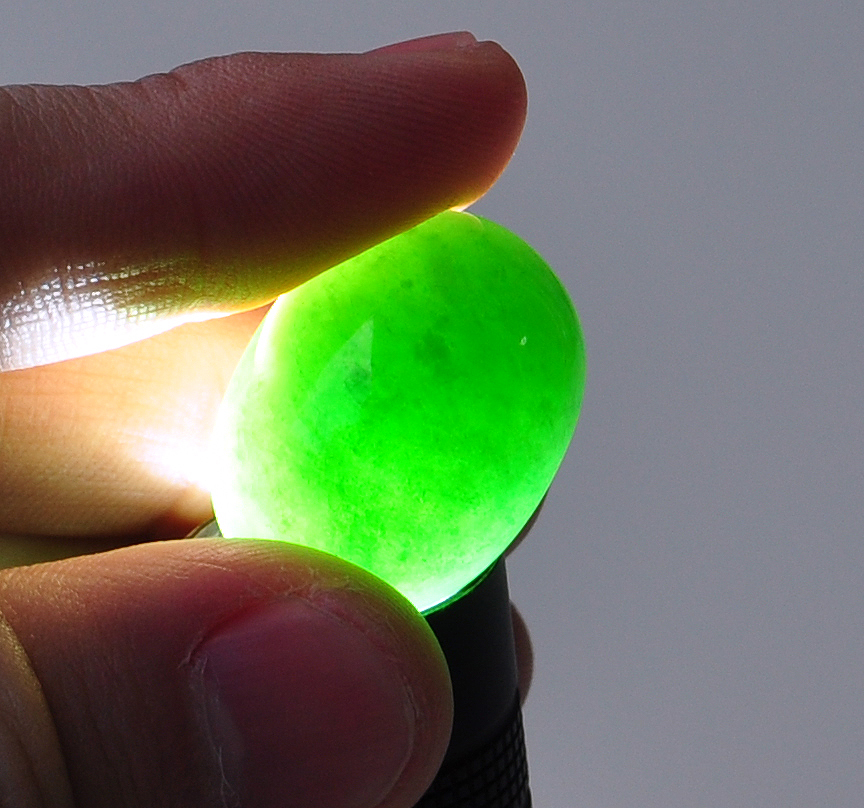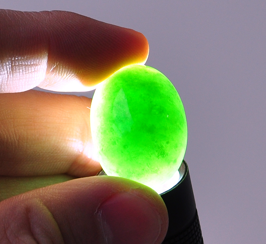 ※非常に透明度も高く、またルースとしては非常に大きな親指程のサイズの超極上ろうかん翡翠になります。