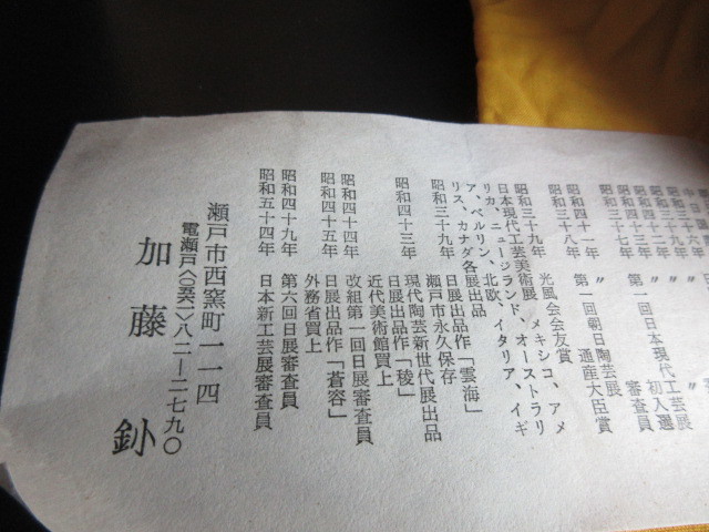 商品説明 | 【 加藤 釥 / 花入】花器/花入/瀬戸焼/茶道具/共箱/未使用品 状態:未使用自宅保管品。長期自宅保管による、傷、擦れ等見受けられます。神経質な方の入札はお控え下さい。お写真に写っているものが全てです。お写真を見てご判断できます有識者さまの入札を希望致します。 サイズ約:直径12x高さ18cm |