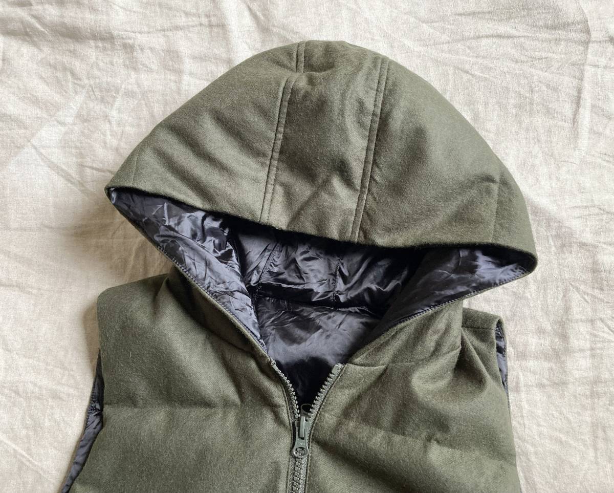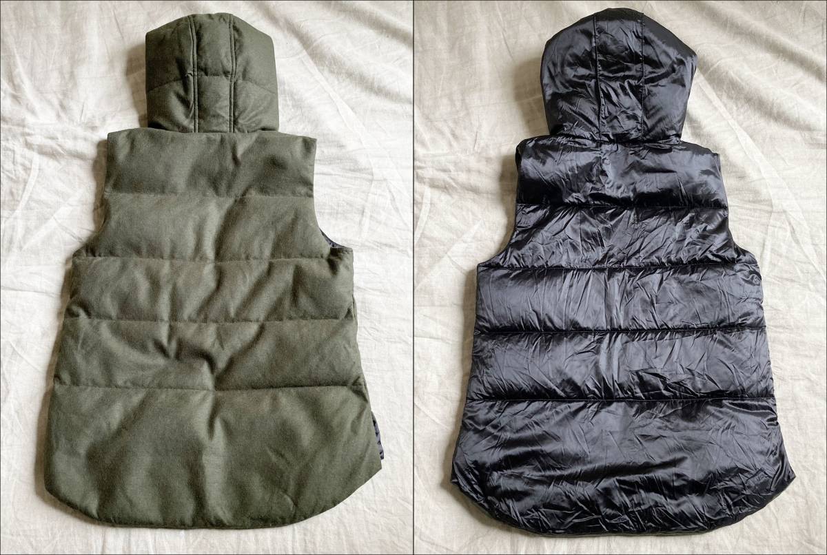 theory セオリー リバーシブル フーデッド ウール ナイロン ダウンベスト S オリーブ ブラック 黒 レディース ●12