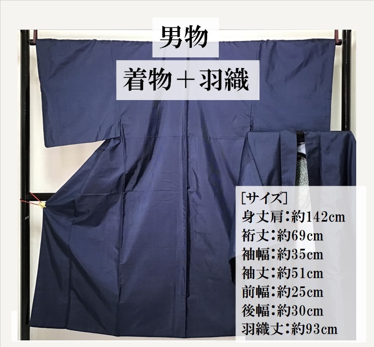 サイズ | 身丈肩約142cm 裄丈約69cm 袖幅約35cm 袖丈約51cm 羽織93cm 前幅約25cm 後幅約30cm |