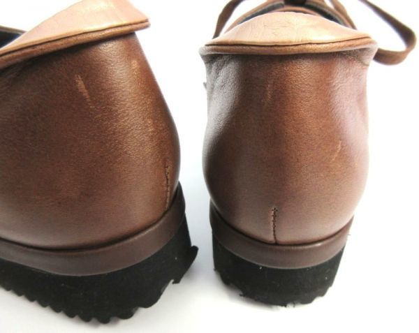 左足の踵にヨゴレ、靴紐にわずかな色ムラ、色ヤケ等による左右の色味の違い等が見受けられます。