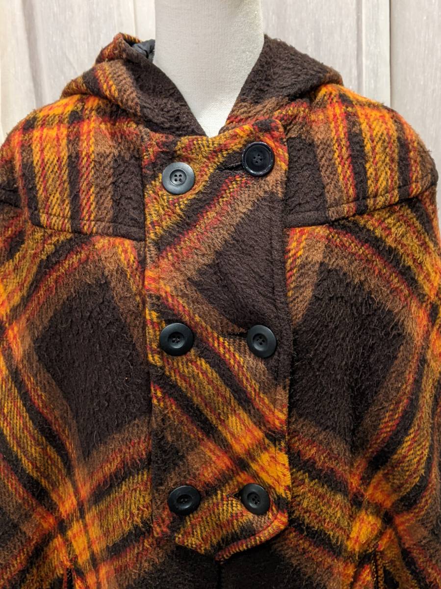 フランスヴィンテージ60’s70’sフード付きマント/ヨーロッパ古着50’sポンチョバイアスチェック民族トラッド英国ブリティッシュレトロΓLT