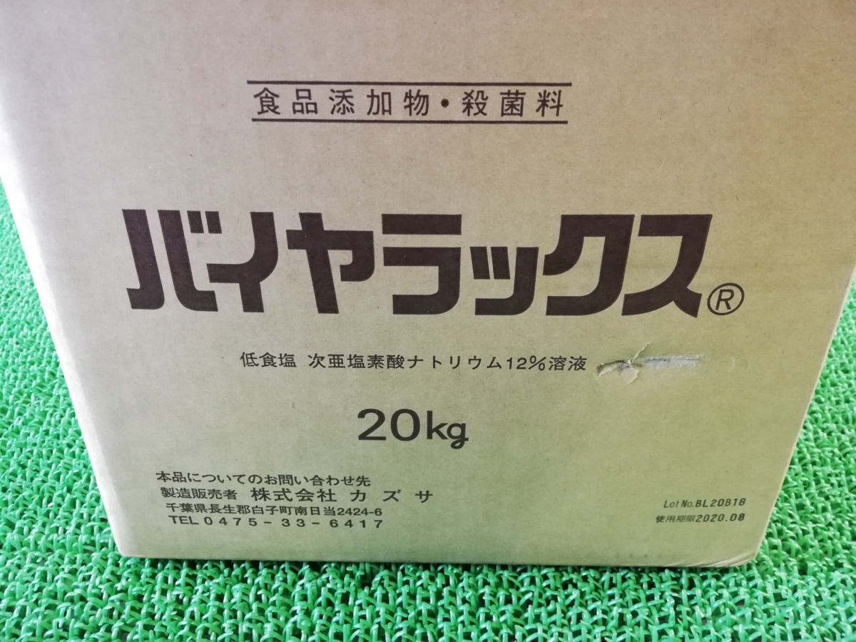 ■カズサ バイヤラックス 20kg 12% 殺菌料 漂白剤 次亜塩素酸ナトリウム 感染症 ウイルス対策 新品未使用 [R020304]