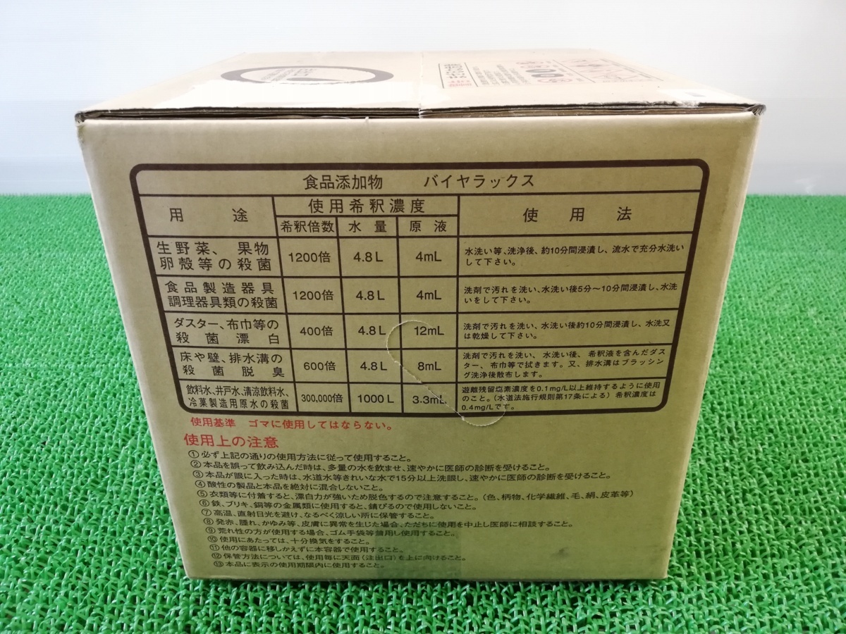 こちらの商品は 、■カズサ バイヤラックス 20kg 12% 殺菌料 漂白剤 次亜塩素酸ナトリウム 感染症 ウイルス対策 新品未使用 [R020304]の未使用品になります。