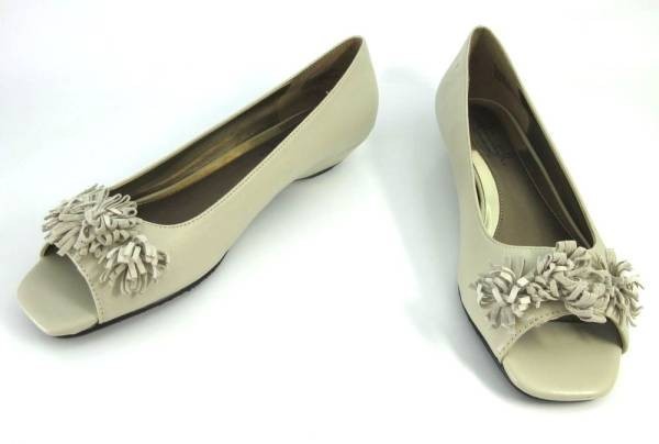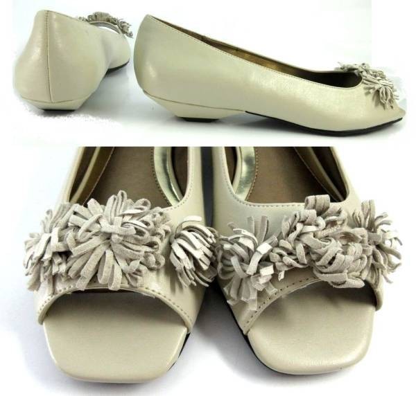 ハッシュパピー レディース 新品 訳☆オープントゥ パンプス コサージュ ローヒール 24cm アイボリー *A0923☆HushPuppies