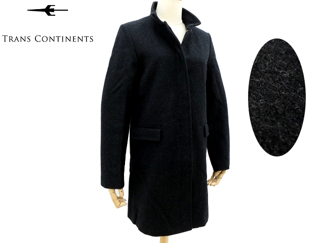 A-465★美品★TRANS CONTINENTS トランスコンチネンツ★日本製 ブラック メルトンウールコート 3 L