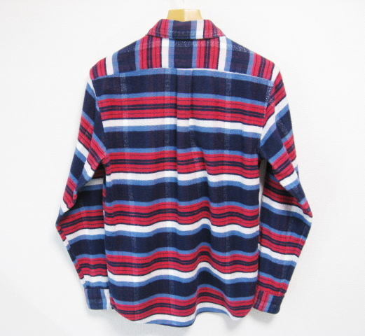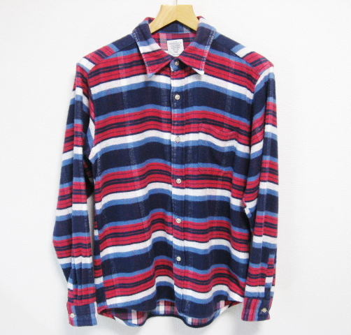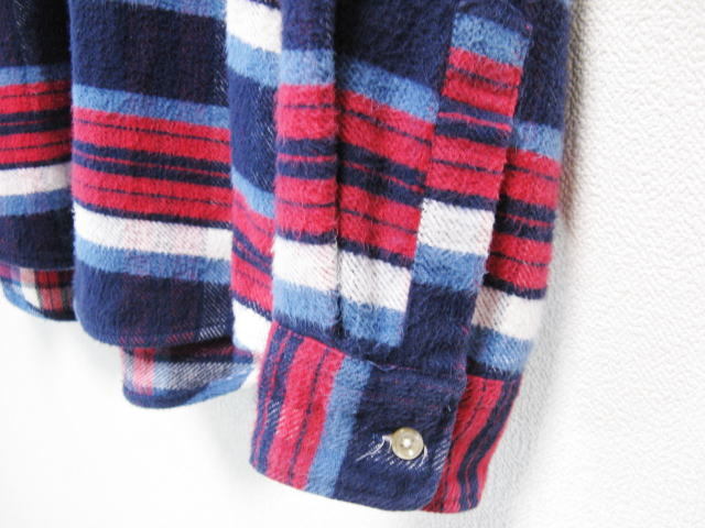 ザ シャーキーズギャラリー の長袖 ネルシャツです。一見ボーダー柄のような綺麗な紺赤系のチェック柄です。作りの良い日本製です。