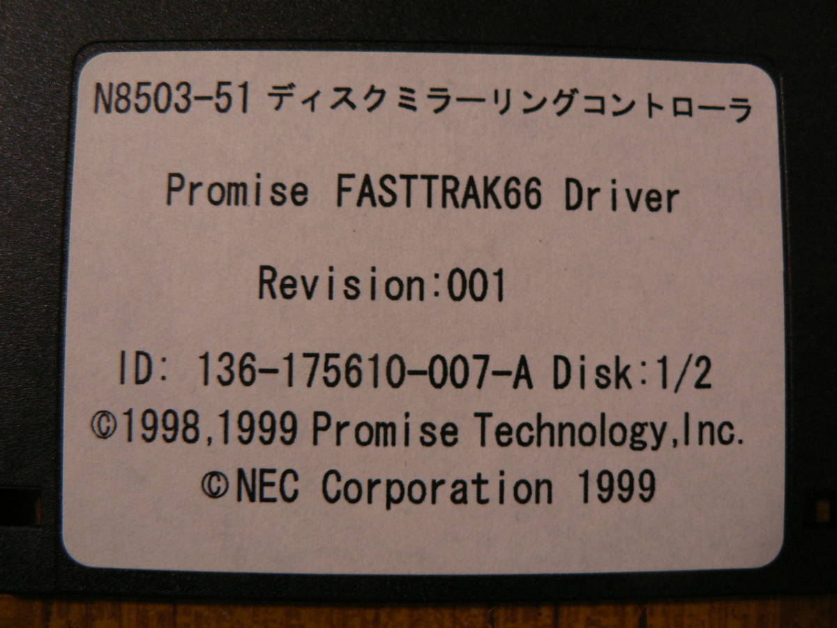 送料最安 \110 FDN09:FD版 NEC N8503-51 ディスクミラーリングコントローラ Promise FASTTRANK66 Driver 2枚組