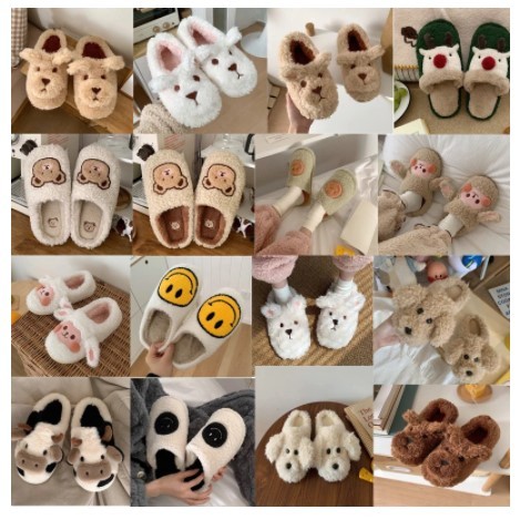 【22.5-23cm】女性用 もこもこ スリッパ,冬の靴,暖かい フラット,かわいい 動物 【6~10】