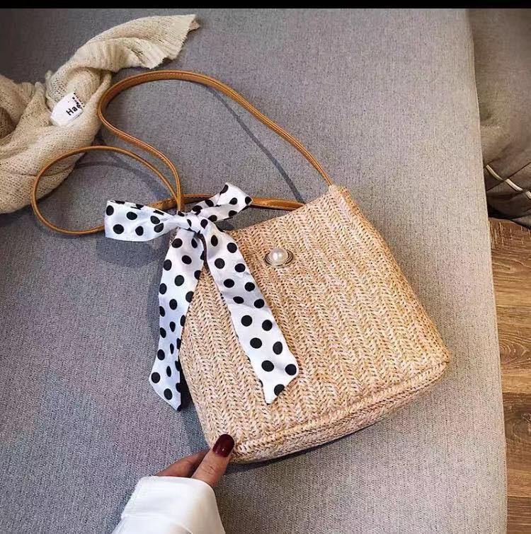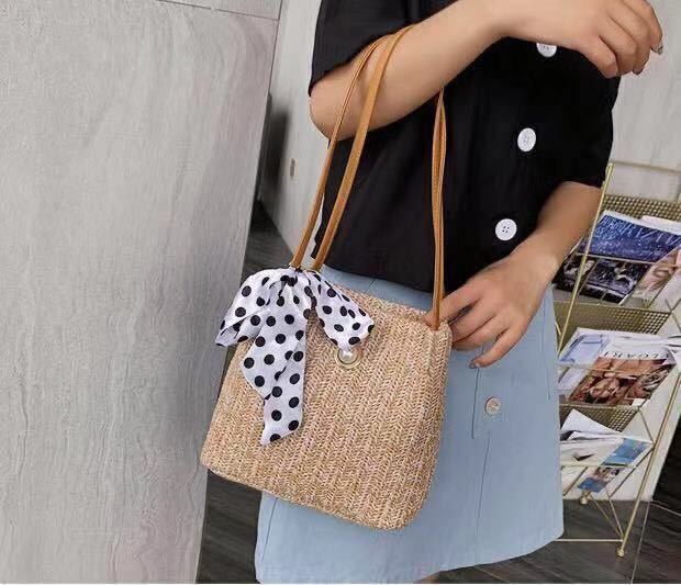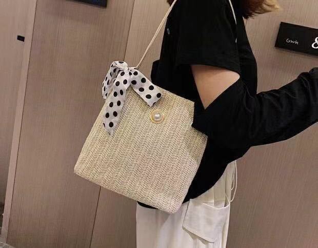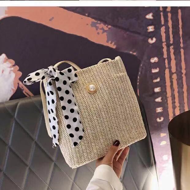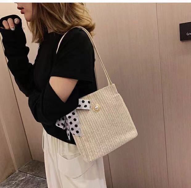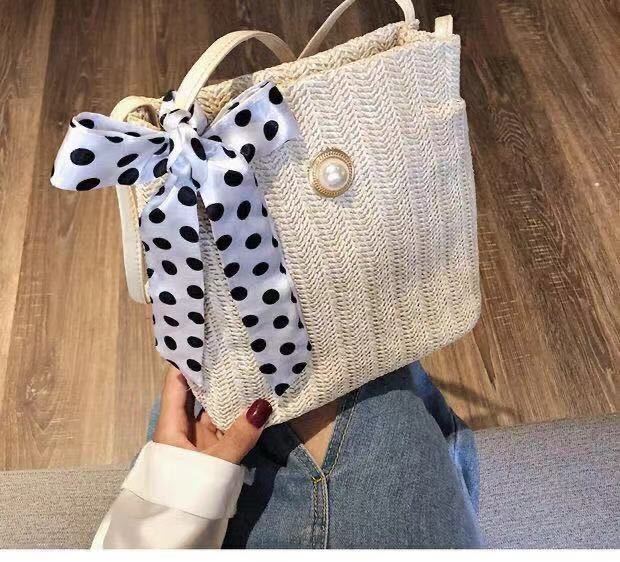 パールが可愛いトートバッグでリボン(スカーフ)の付け外し可能です