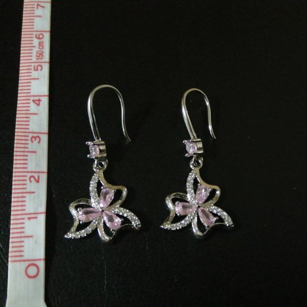 ピアス シルバー ピンク クリスタル ロング ラインストーン cz レディース 韓国 エレガント 幾何学的 かわいい #C646-1