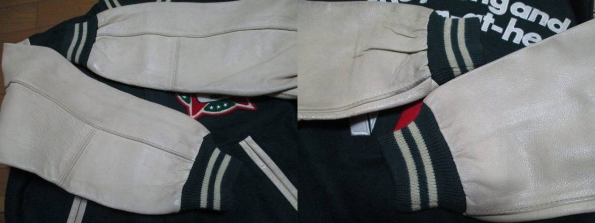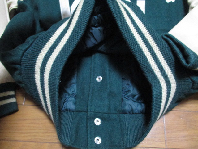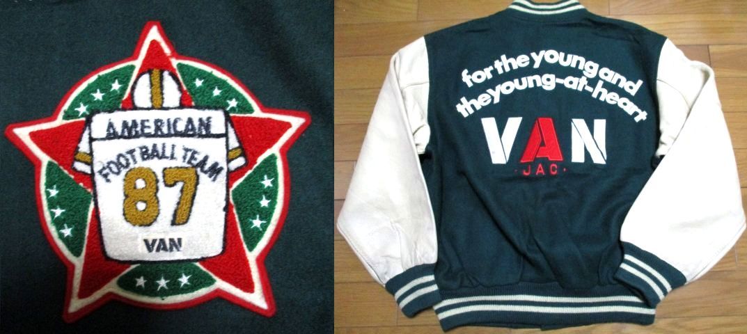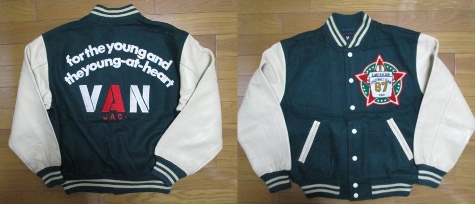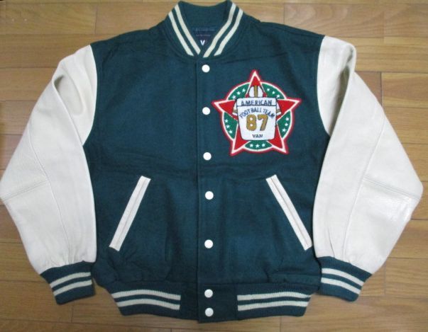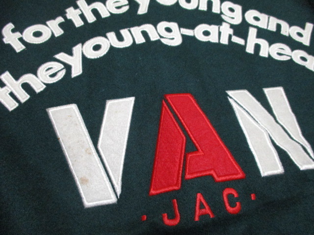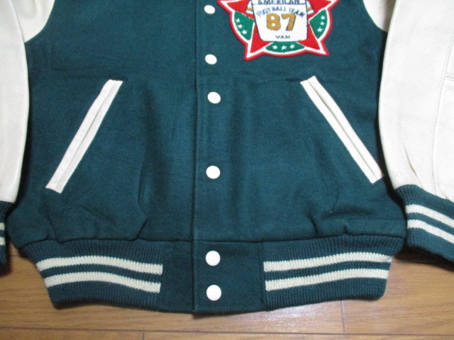 希少色 VAN JAC スタジャン Mサイズ 袖牛革 アートロゴ 87年 ワッペン グリーン 緑 ジャケット ヴァン フットボール 汚れ有