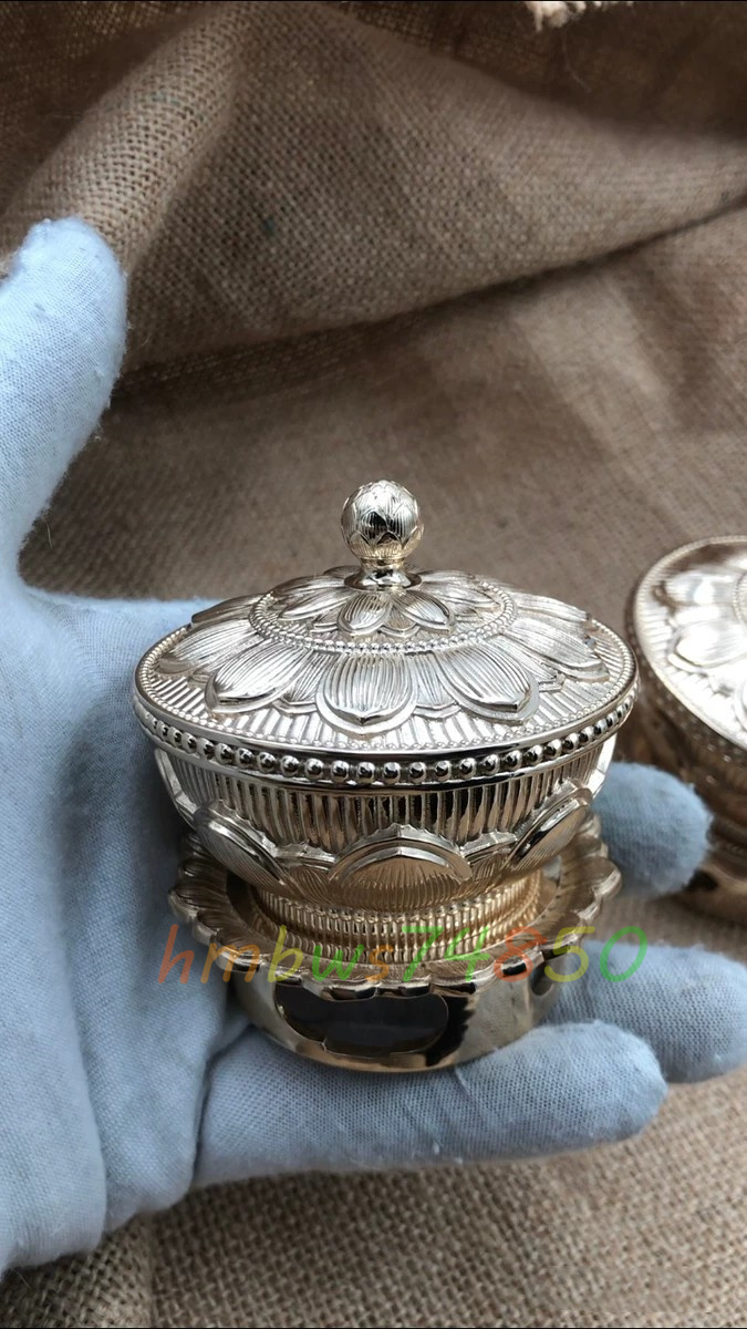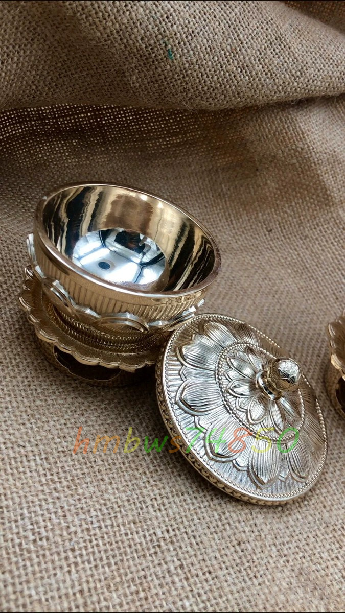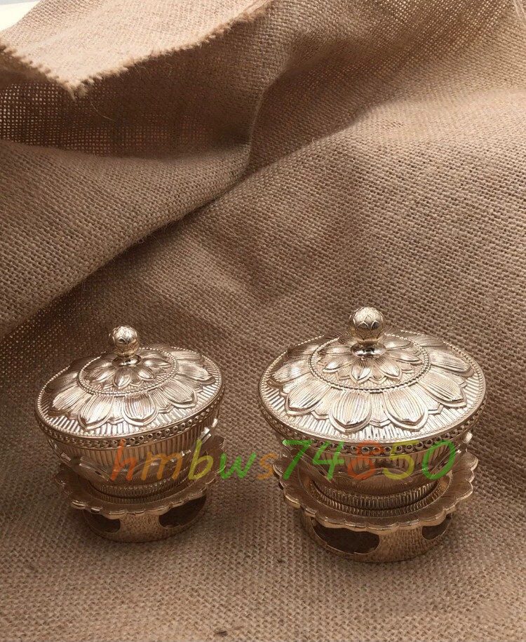 清浄な水を入れる器で、塗香器と合わせて二器(にき)と呼ばれます。 形は同一ですが、洒水器の方が塗香器より一回り大きいです。 商品状態:未使用 塗香器:高さ7.5cm 幅7.1cm 洒水器:高さ8.5cm 幅7.8cm 材質:銅 | |||