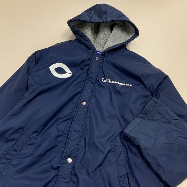 激レア 非売品 良品 中央大学 スキー部 ベンチコート チャンピオン champion 裏ボア 中綿ポリダウン メンズ L相当 ネイビー 入手困難