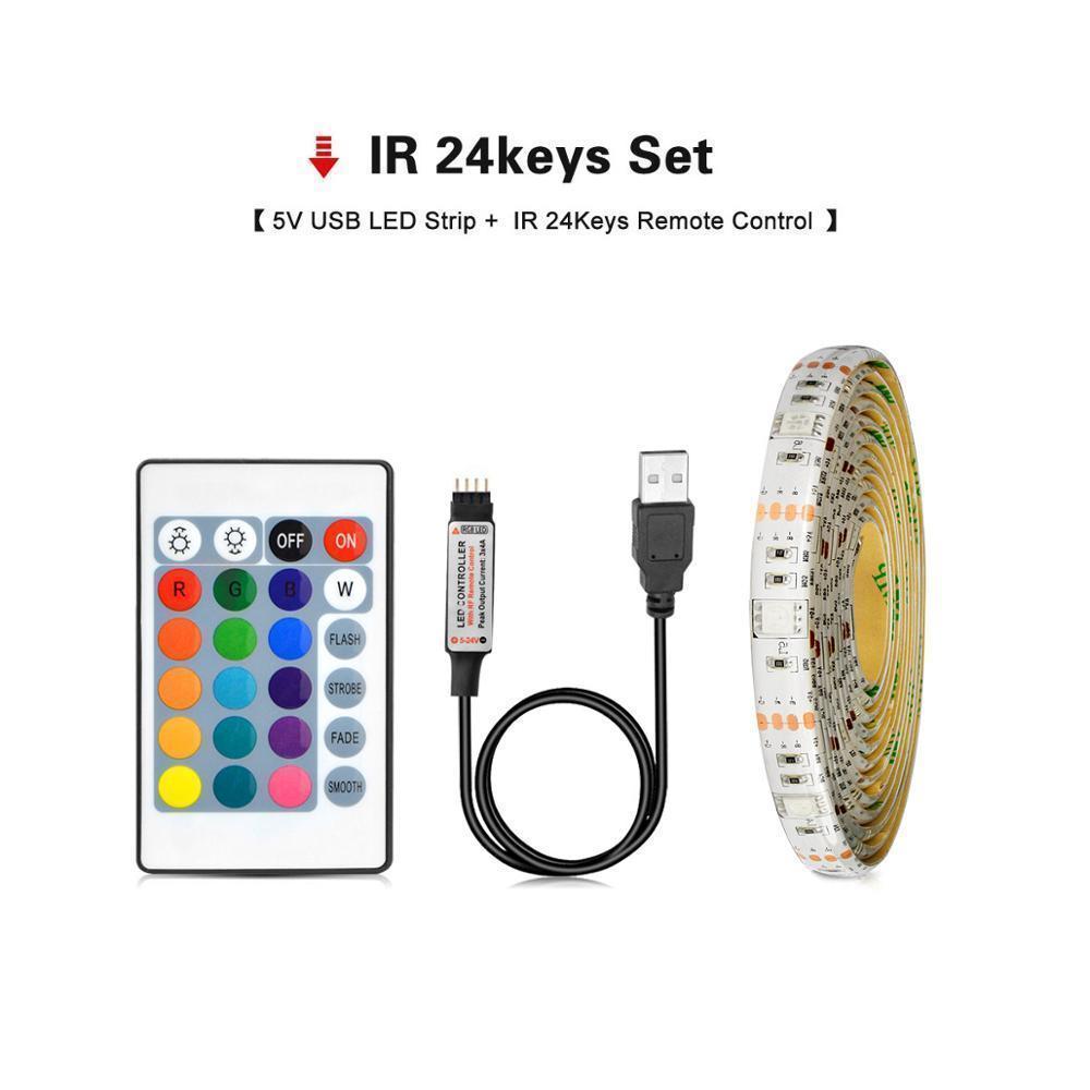 黒ベースはこちら。 テレビやパソコン、車内のUSB差込口に差し、テープ裏の保護シートを剥がしてそのまま貼るだけで取付完了。 誰でも簡単におしゃれな間接照明がつけられます! 防水仕様でキッチン、水回り、水槽(アクアリウム)、車など水濡れする場所にも取付可能です。 (USBアダプター周辺、リモコンは非防水です) 付属のリモコンで16色に切り替えられます。 色選択だけでなくON/OFF、調光、ストロボやフェードなども操作可能です。 USBからLEDテープまでは15cm程度ですが、間に4本の配線を伸ばせばもちろん延長可能です。 延長用の配線は1m200円にてオプション販売いたします。 また、コーナー用L字コネクター(画像4枚目)は1個80円にて承ります。 テープ長さ:2m 電圧:DC5V LED電球:5050SMD 120球 カラー:RGB ベース:白 幅:10mm 厚さ:2.5mm 耐熱性:-20°~50° 防水性:IP65 リモコン電圧:5-24V リモコン耐熱性:-20°~60° 電池:CR2025(別売) | ||||