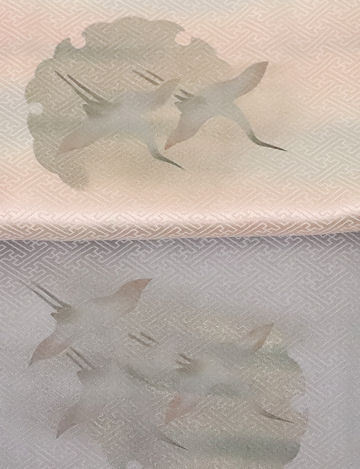 | 色・柄 | 訪問着 袷 丹後縮緬地 薄グレーぼかし紗綾形綸子地 金彩鶴・雪輪紋 椿・梅 (写真では上手く色が出ない場合があります。ご了承下さい) |