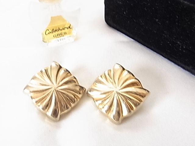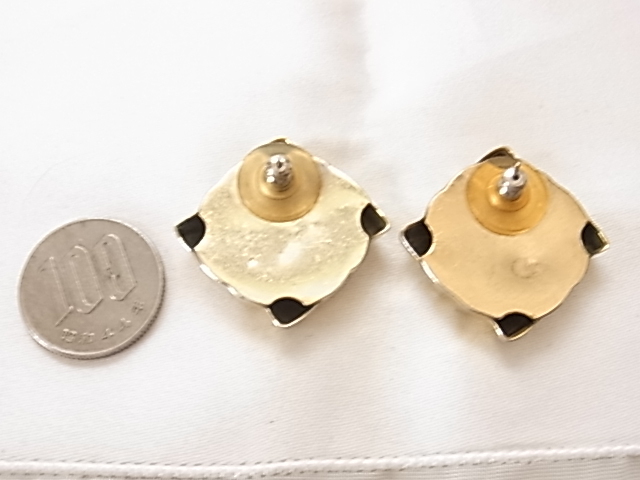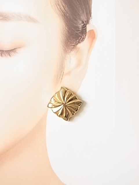 重厚感 金色 ゴールドカラー 菱形に波のような刻みデザイン ピアス☆
