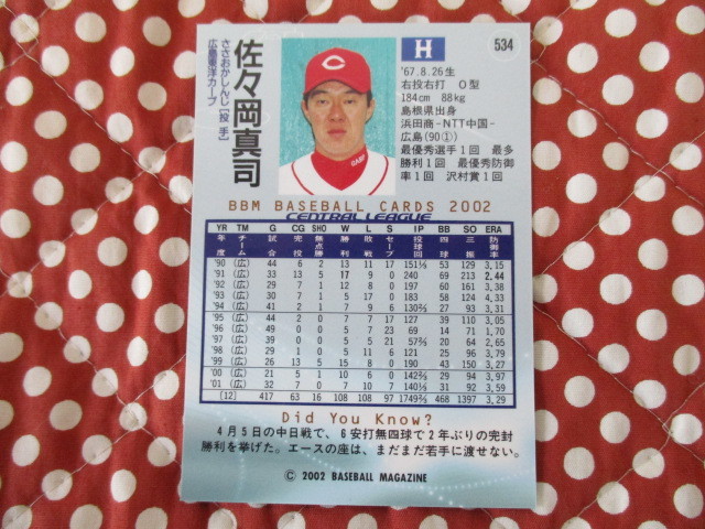 ★BBM 2002 ②★ 534 佐々岡真司 広島東洋カープ ベースボールカード トレカ♪
