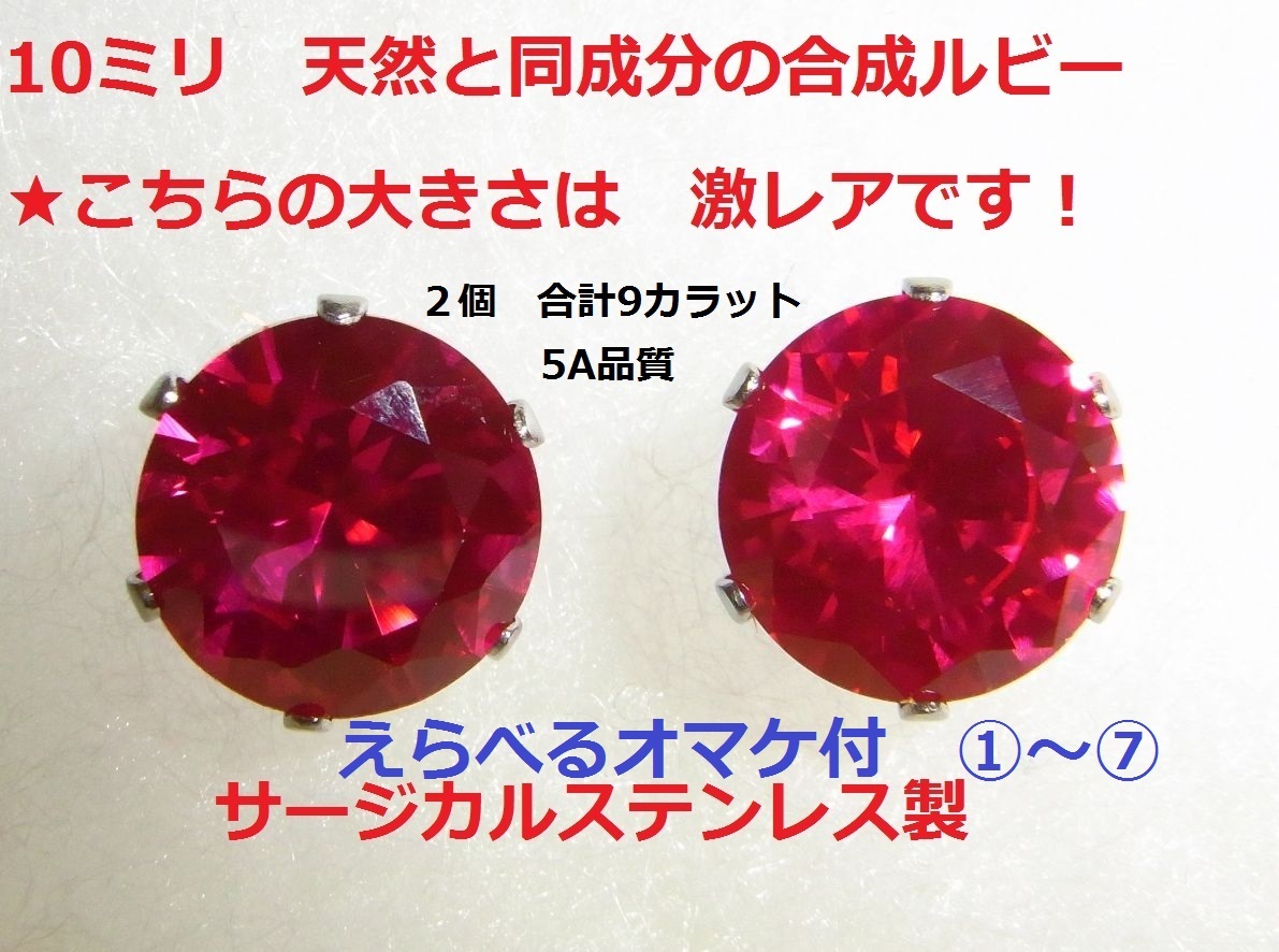 新品 9ct 大粒 ☆10ミリ ルビー ピアス 天然同成分 ステンレス製 合成ルビー 宝石 ステンレス製☆ | |||
