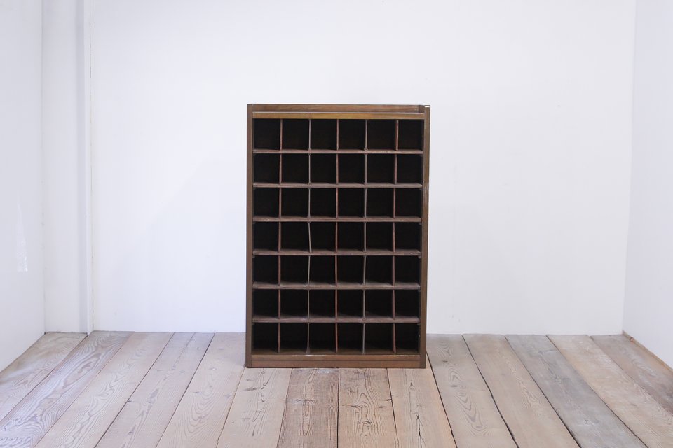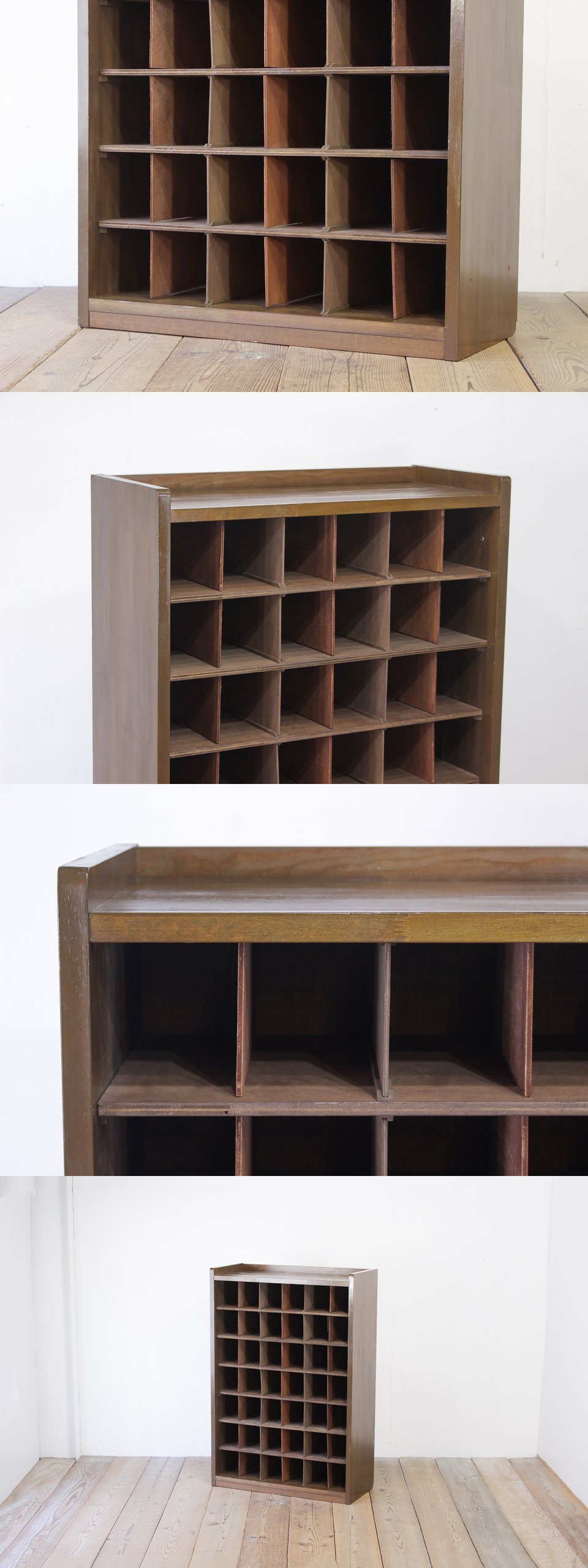 レトロ 仕分け 棚 枡 マス コレクション シェルフ 飾り棚 食器棚 ディスプレイ 什器 古家具/図書館カード郵便局昭和アンティーク/LHT11056