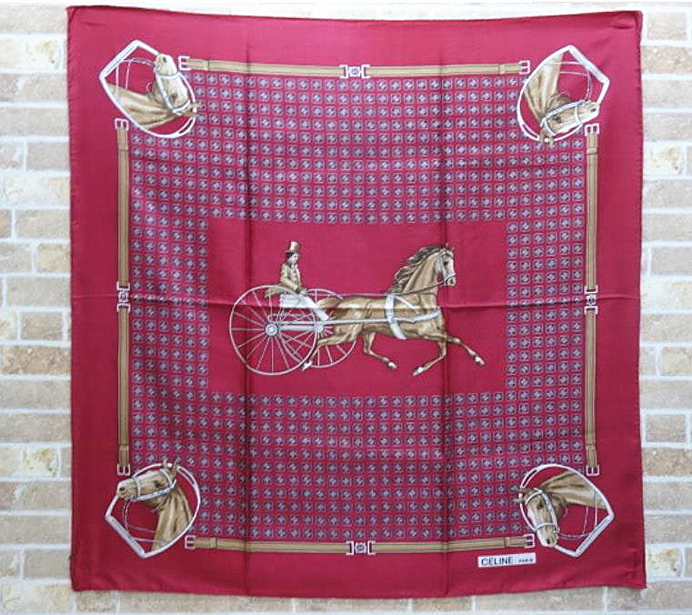 イタリア製★CELINE セリーヌ★人気馬車柄 シルクスカーフ(y0117D1ー081800)