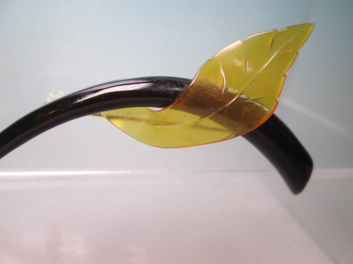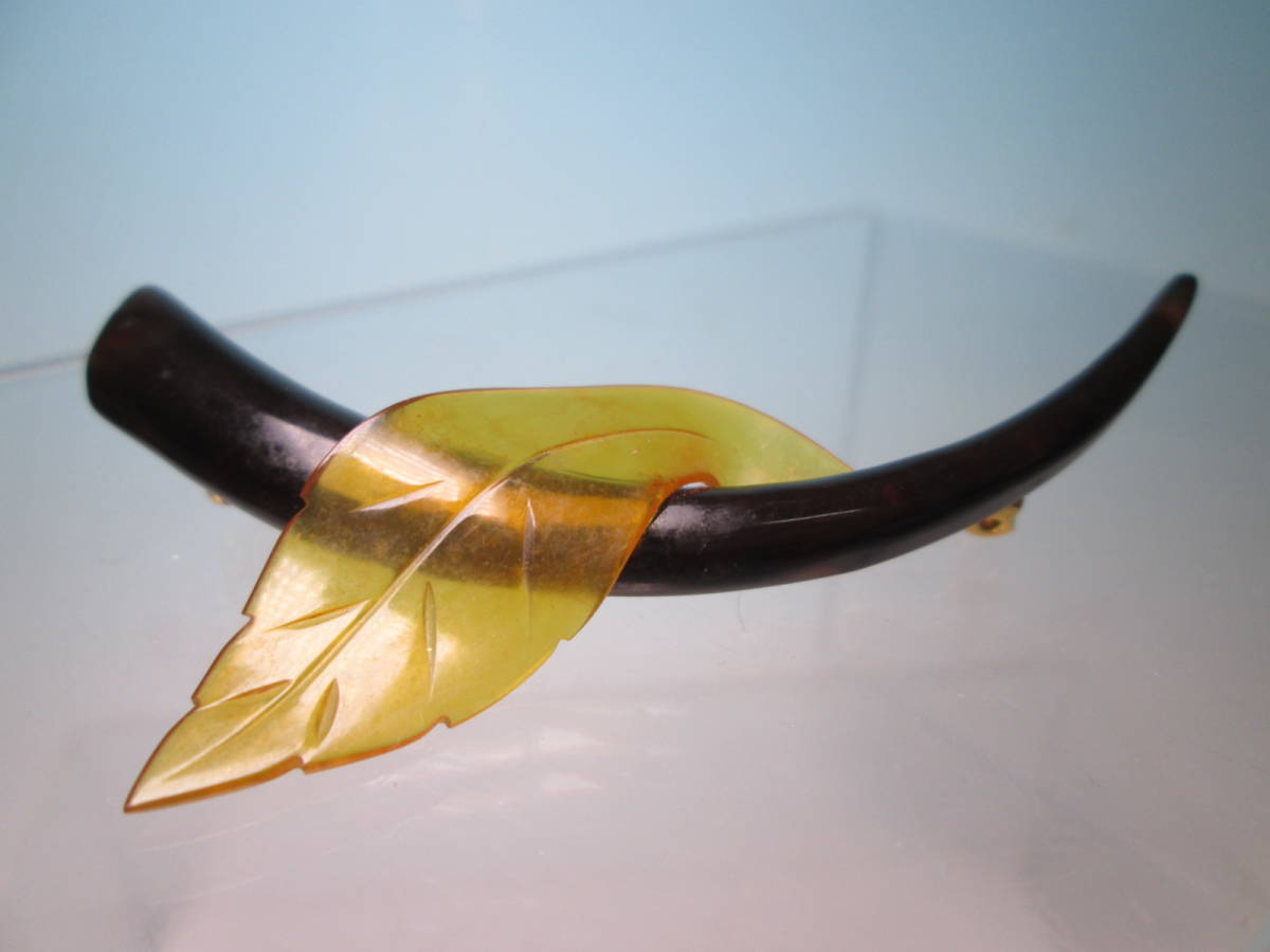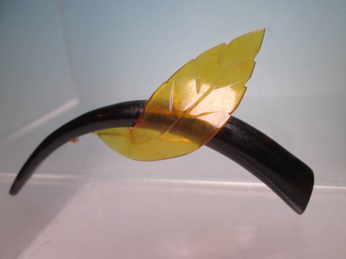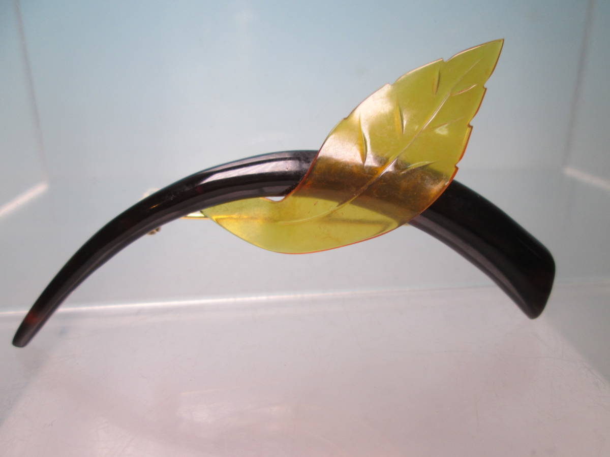 ☆本鼈甲大振り 7,6cmツーカラーシャープな葉っぱデザインのブローチ
