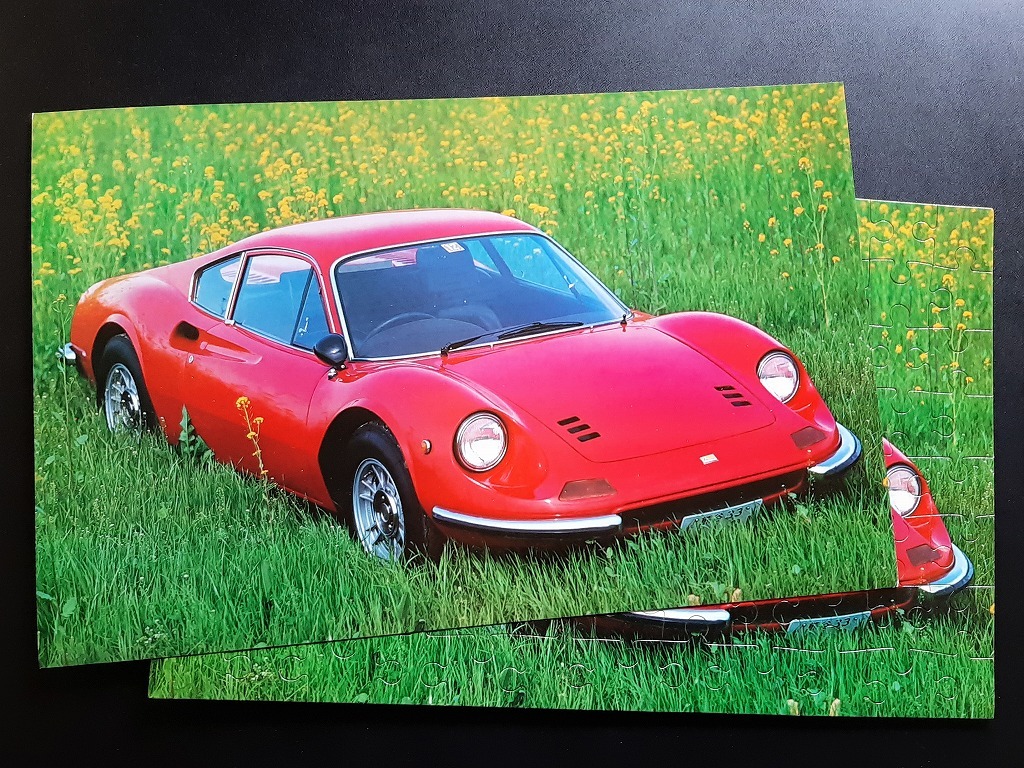 ★'70s 当時物 紅い フェラーリ ディノ スーパーカーパズル 木製 未使用 2セット 特大カード入り!☆ Ferrari 365GT/BB