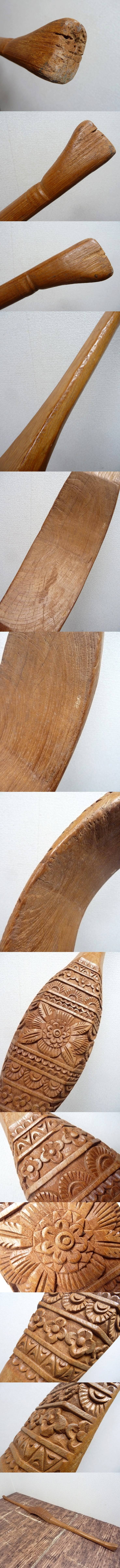 (☆BM)【大処分セール】木製 木彫り アート 花 細工 全長125㎝ 置物 オブジェ 彫刻 弓 インドネシア アフリカン エスニック レトロ
