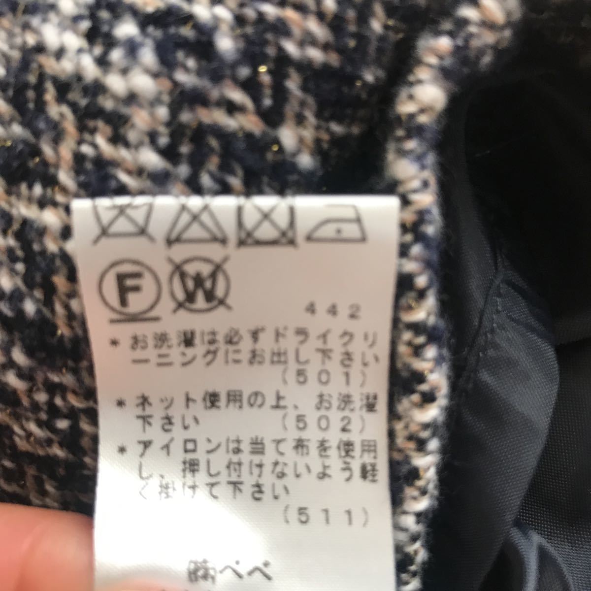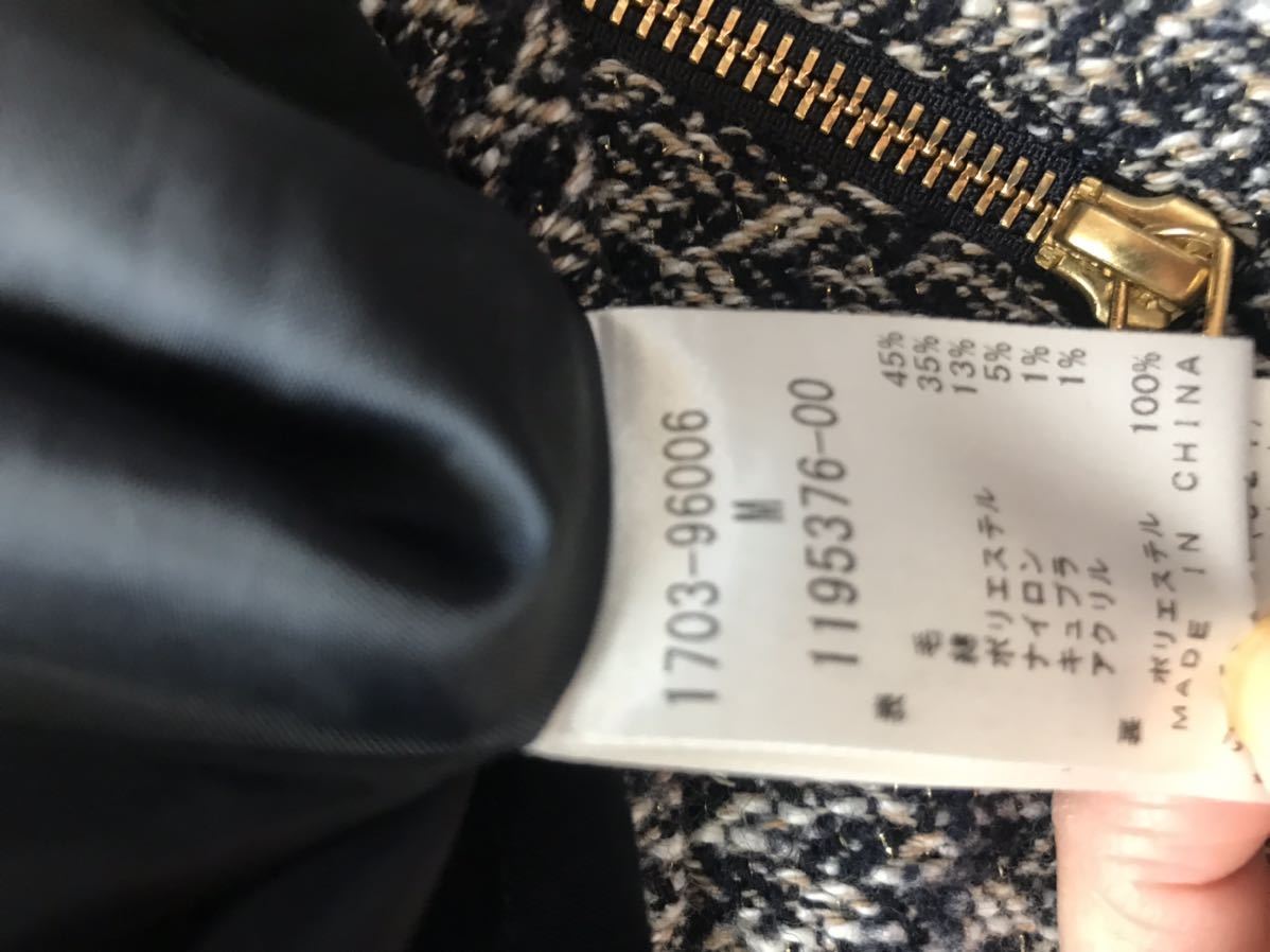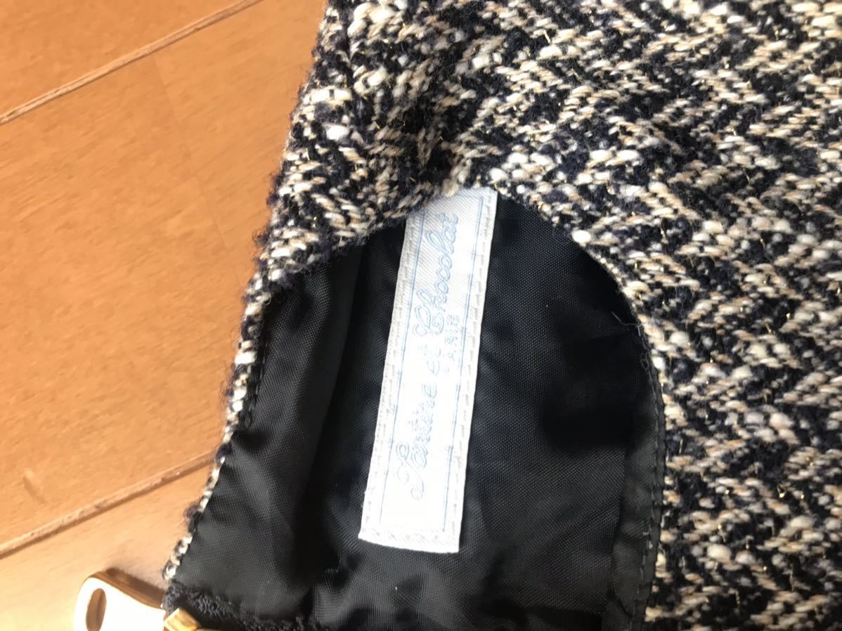 その他:裏地あり、実物最後のアップの写真が近いです。ネイビー×ホワイト×ベージュ系×ラメツイード、zip部分ゴールド、ポケットあり、前ボックスプリーツ