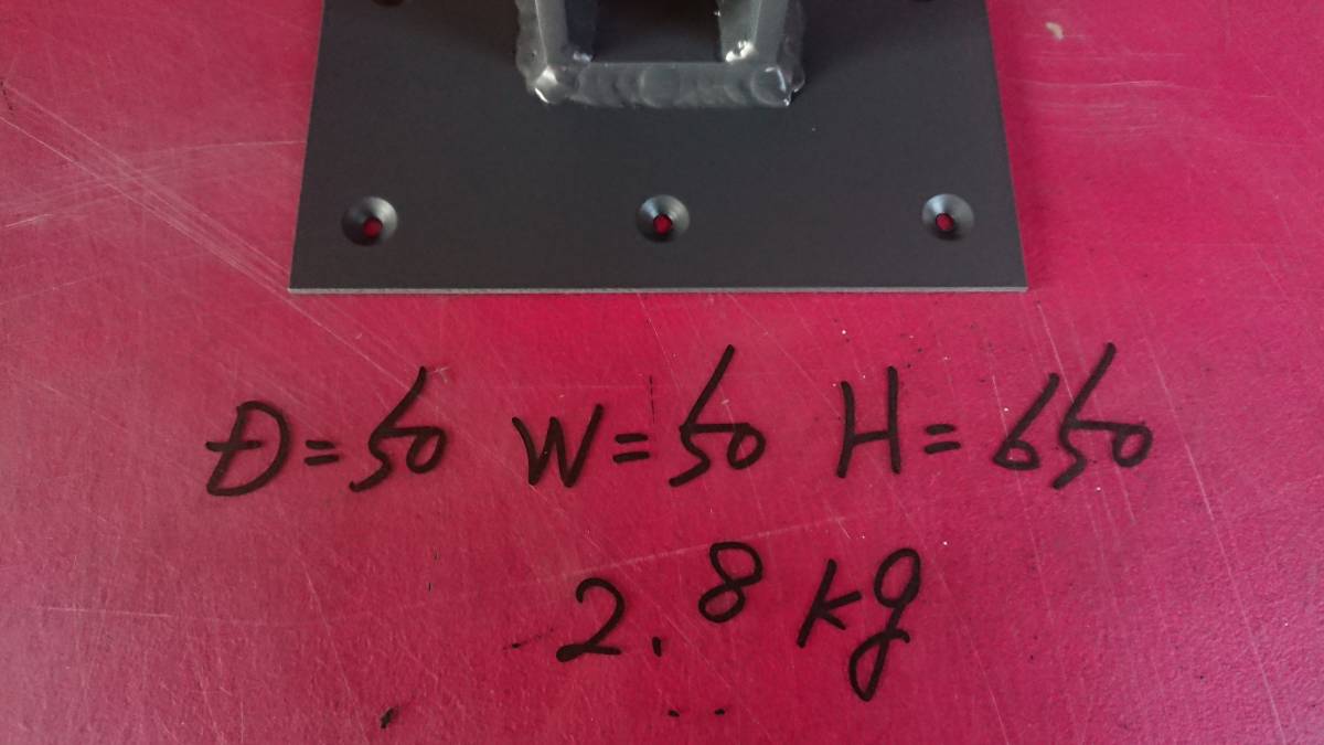 フレーム:50mm × 50mm × 650mm( 幅 × 奥行 × 高さ ) ・ 天板受け:150mm × 150mm × 2.3mm ( 幅 × 奥行 × 厚み )