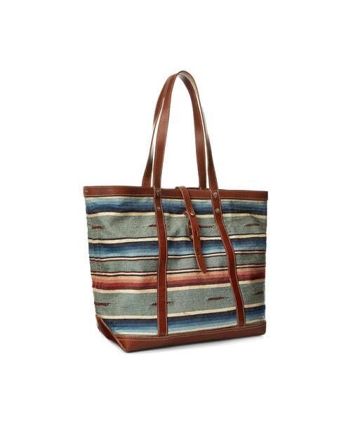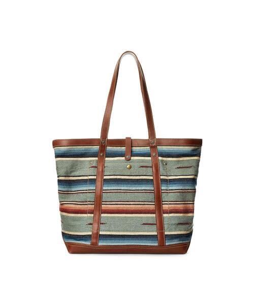 ウールとコットンを使用した手織りのジャカードで仕立てたトート。セラーペ風モチーフが特徴のアイテム。トップハンドルと底部にはタンニンなめし革を使用。・レザーのトップハンドル2本・トップにスタッズ留めのフォールドオーバーレザーストラップ・内側にスリップポケット1つ、ジップポケット1つ・レザーの底部。銅色のリベット・キャンバスの裏張り・材料:羊毛 、綿 ※注意:柄の配置は、商品によって異なります。