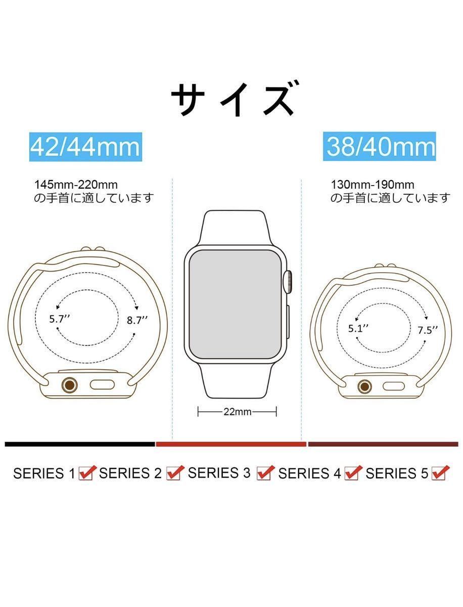38mm/40mm:ループバンドは手首のサイズに合わせて130mm ~ 195mm(5.30" ~ 7.70")です