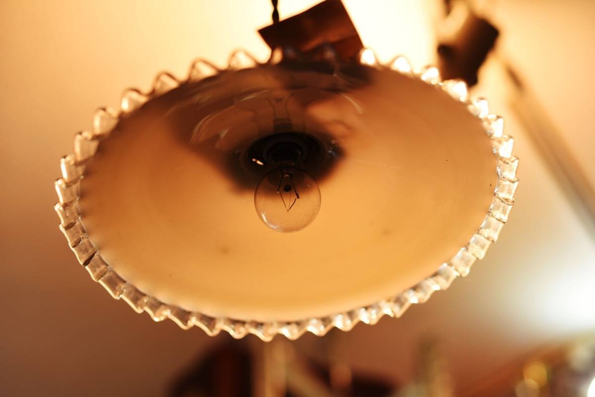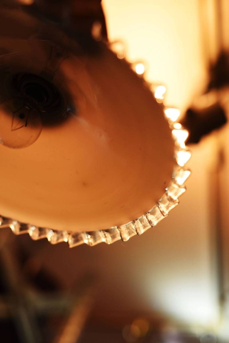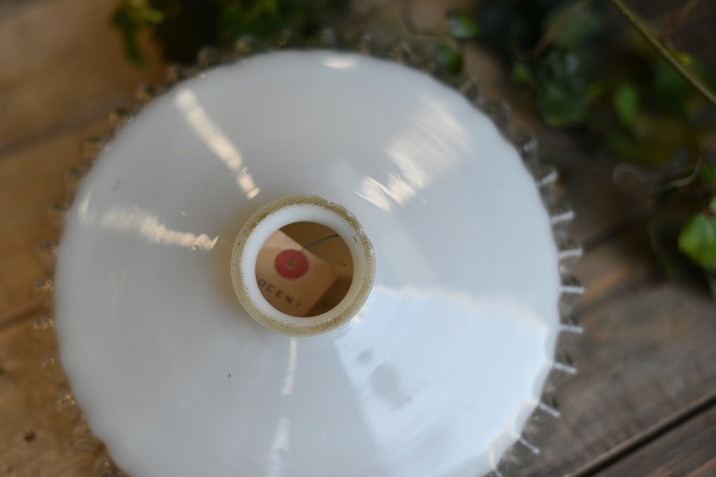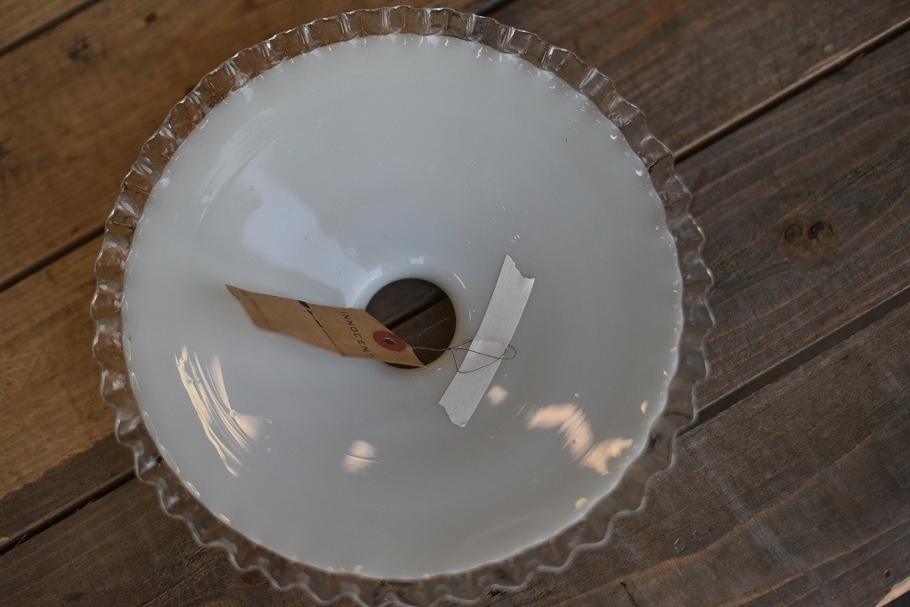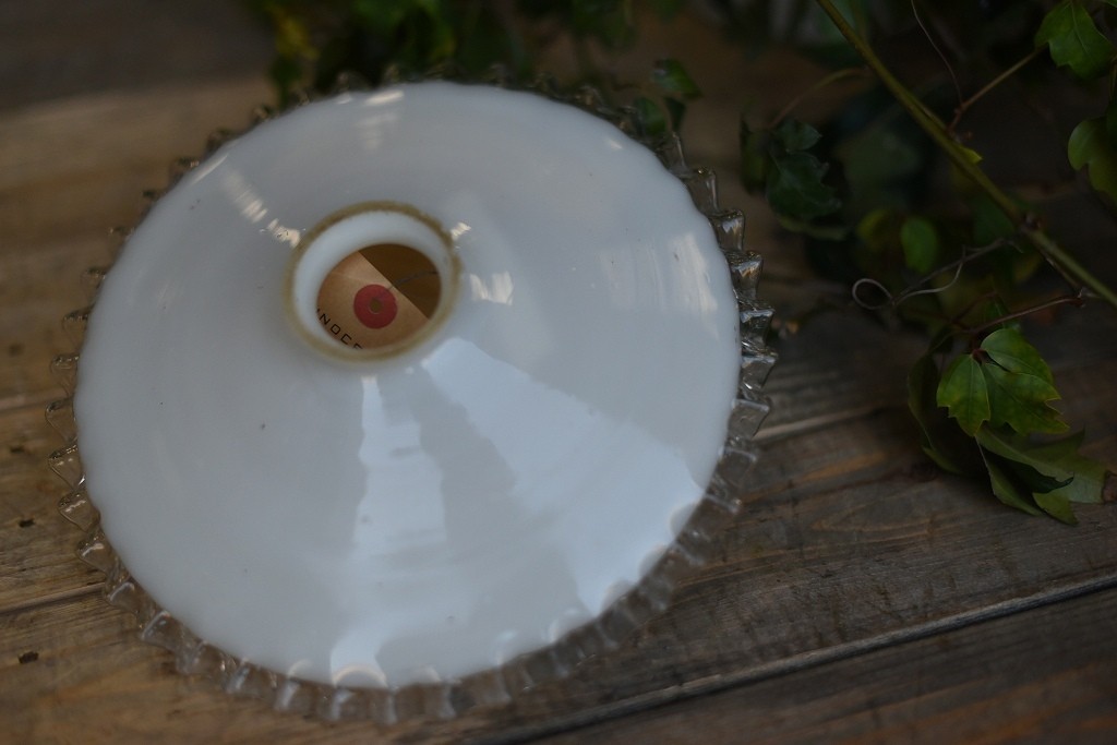 1684 ヴィンテージ 乳白色ガラス ランプ シェード クリアフリル アンティーク ビンテージ レトロ  英国 クウネル シャビー