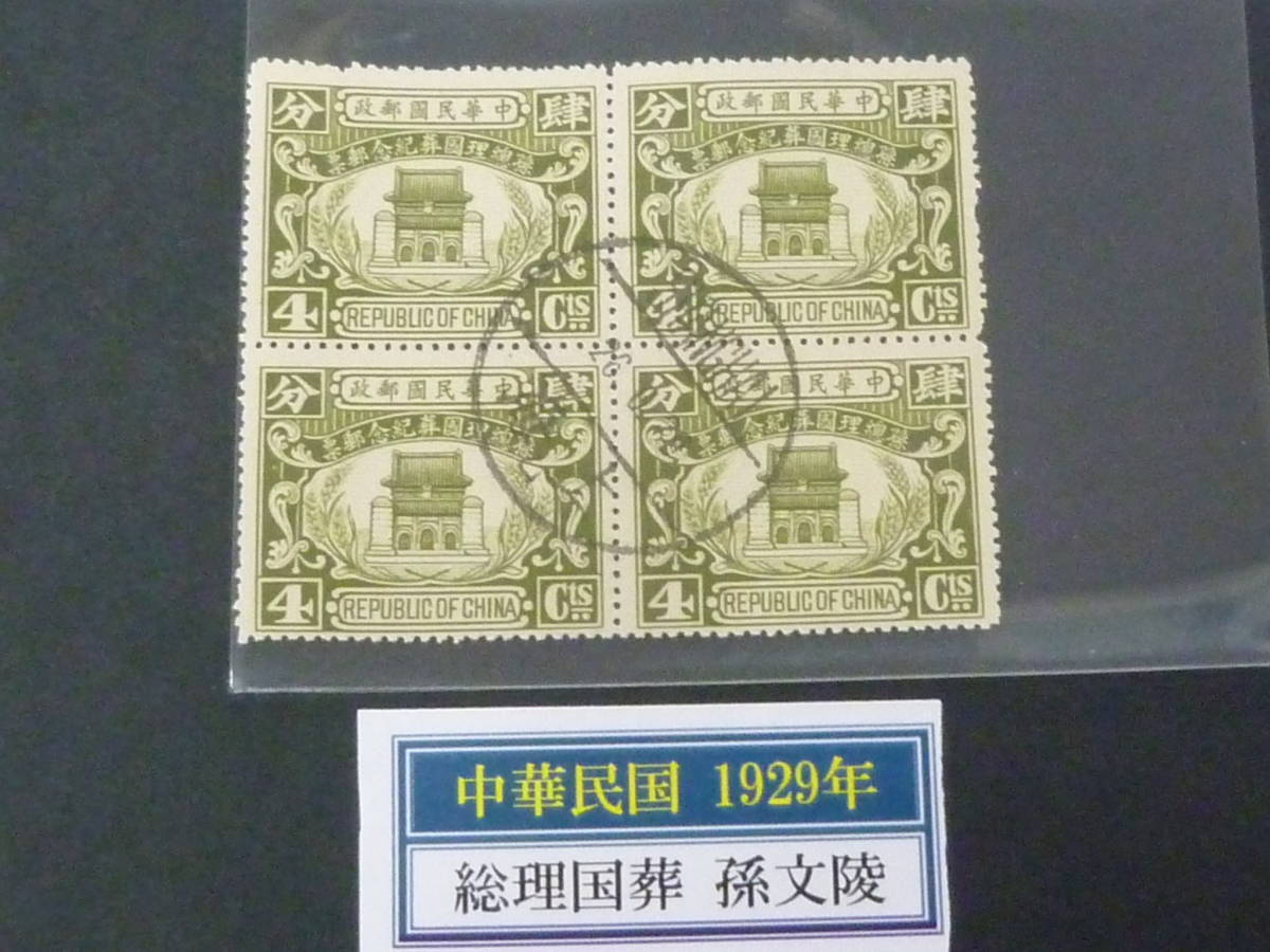 22 P 旧中国 中華民国切手 1929年 #346 総理国葬 孫文陵 4c 田型 印影大美消 消印「上海」
