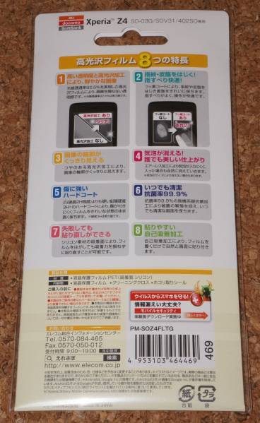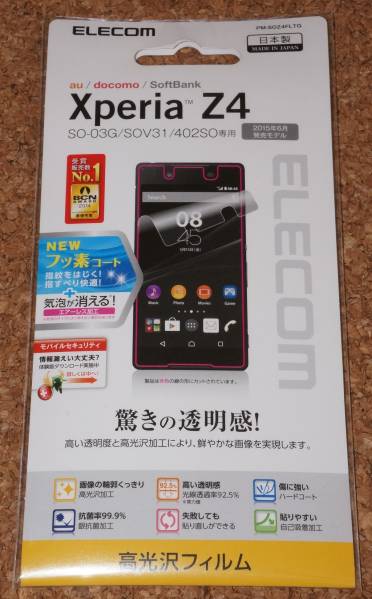 ELECOM Xperia Z4 SO-03G/SOV31/402SO 液晶保護フィルム 高光沢 新品・未使用です。
