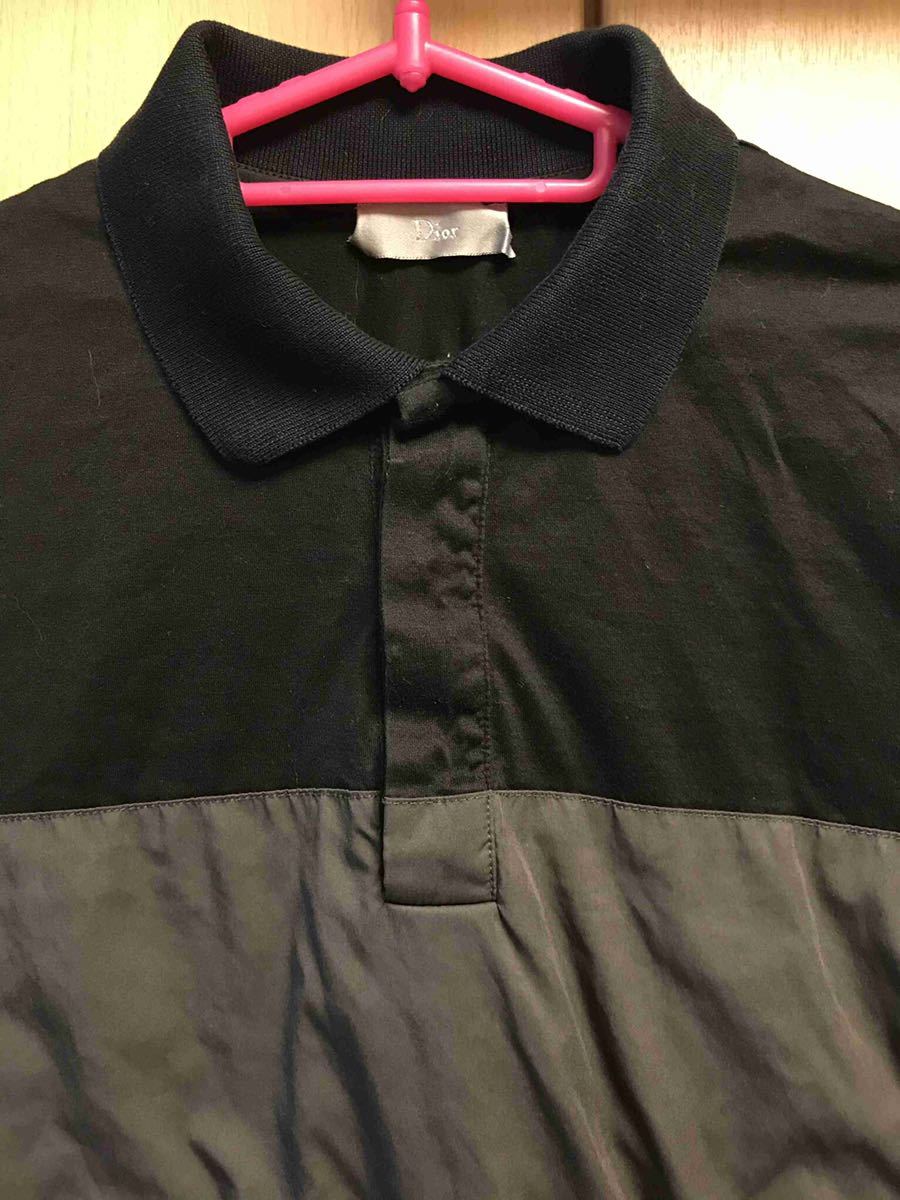 正規 13SS Dior Homme ディオールオム クリスヴァンアッシュ ナイロン切替 コットン ポロシャツ 黒 XS