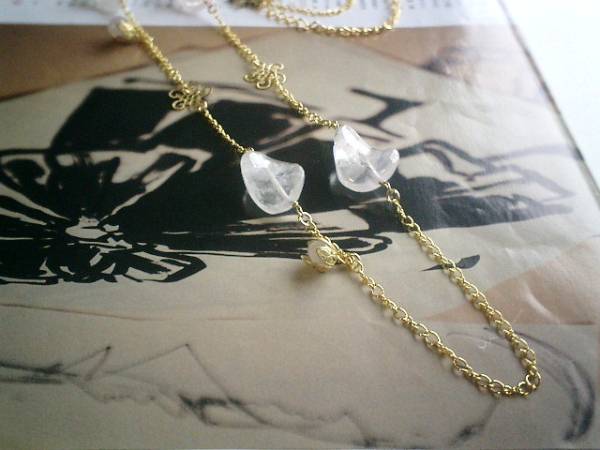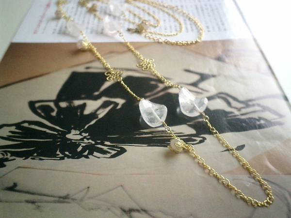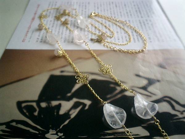 エスニック・気分・・シリーズです♪薔薇の妖精・・儚げなローズクォーツのネックレスです♪ラフタンブルやツイストなどデザイン違いのローズクォーツにシックな座金や透かしチャームを合わせてアンティーク・モダンしています♪20×15ミリのツイスト、8ミリのラフタンブルのローズクォーツに透かしチャームを合わせて可憐な表情です♪長さは全長115センチ位で調節自由です♪2連にされても素敵です♪♪お揃いのネックレスやブレスレットやピアスも出品しています♪シンプルで飽きのこないいつまでも着けられるデザインを考えて作りました!ハンドメイドをご理解頂いてノークレーム、ノーリターンでお願いします