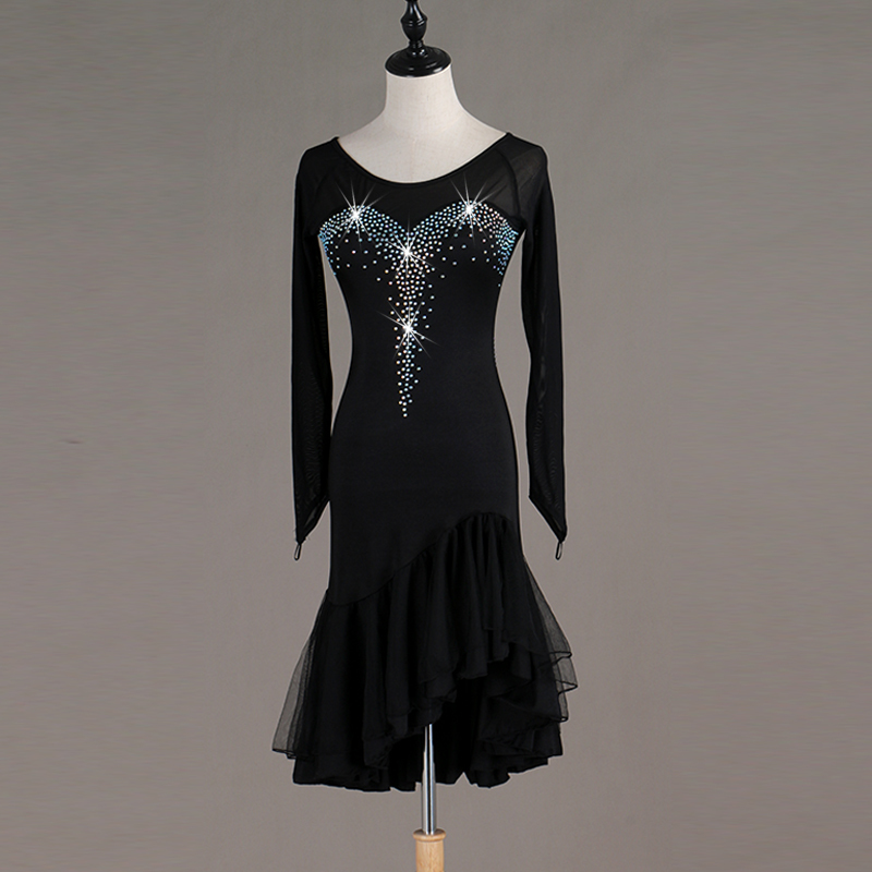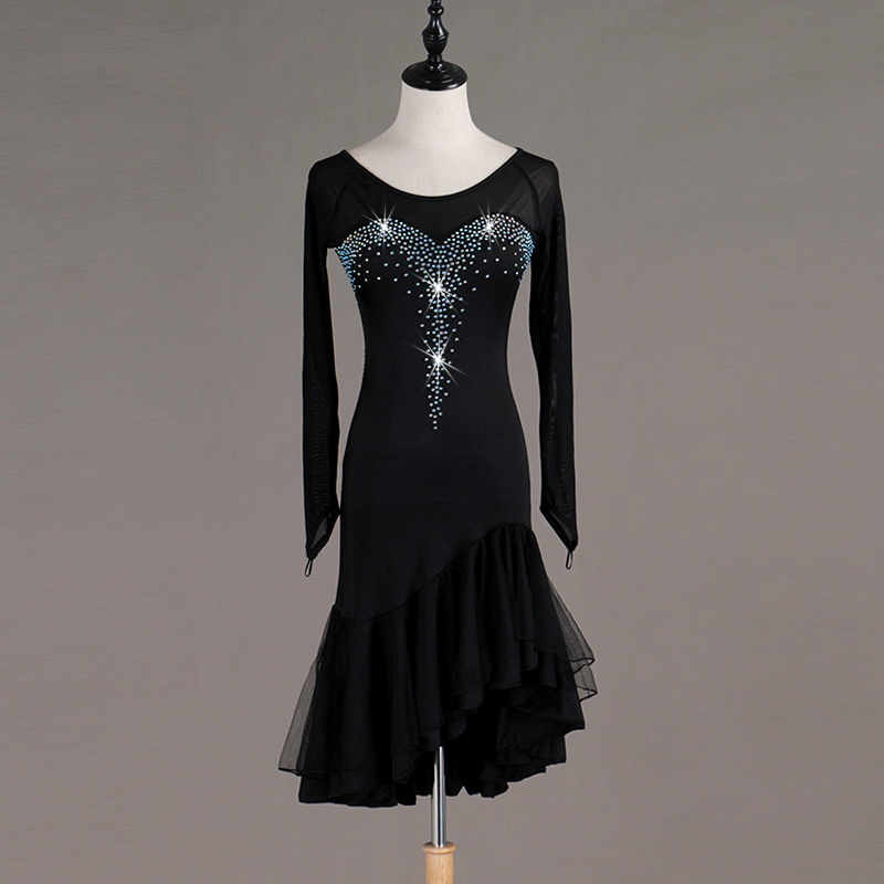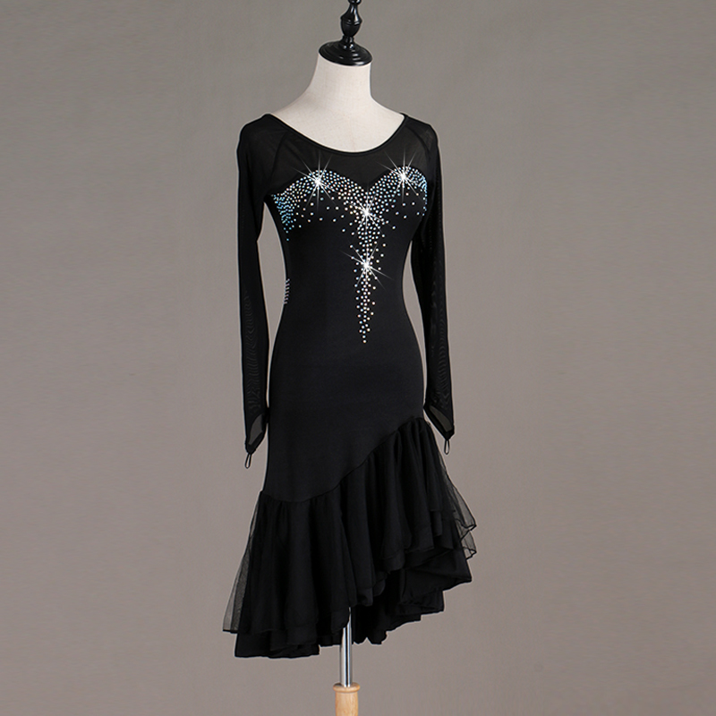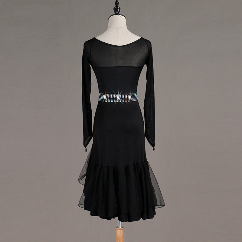 最新入荷レディース社交ダンスラテン競技ドレス 社交ダンスタンゴドレス ブラック SーXXL サイズ調整可