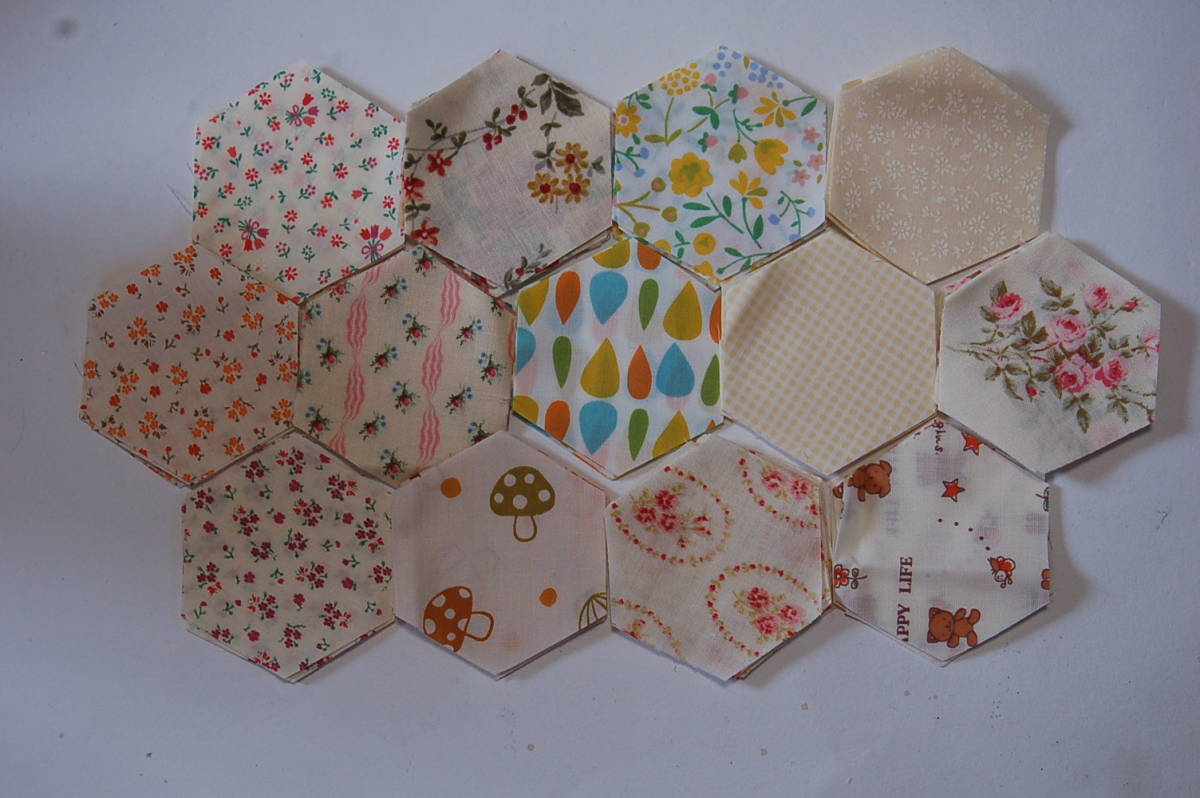 カットクロス パッチワーク用 六角形26㎜ 78枚 №62-4