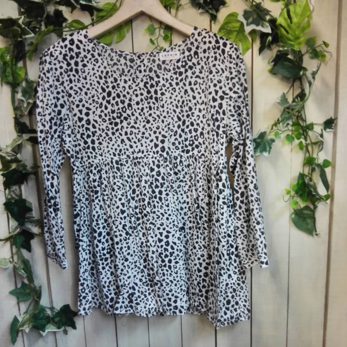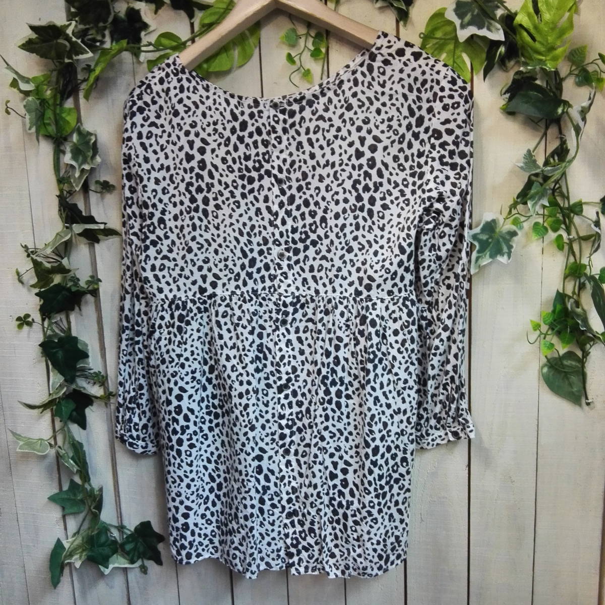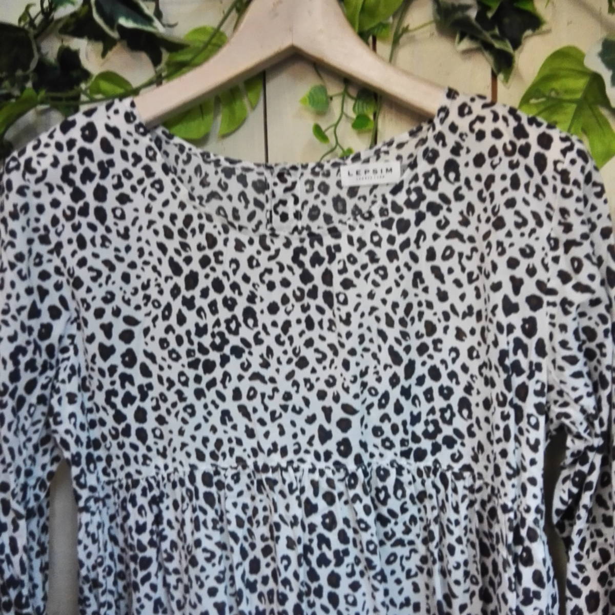 ★A627★LEPSIM★レプシィム★ブラウスチュニック★後ろボタン★アニマル柄★長袖★サイズL 綿37%