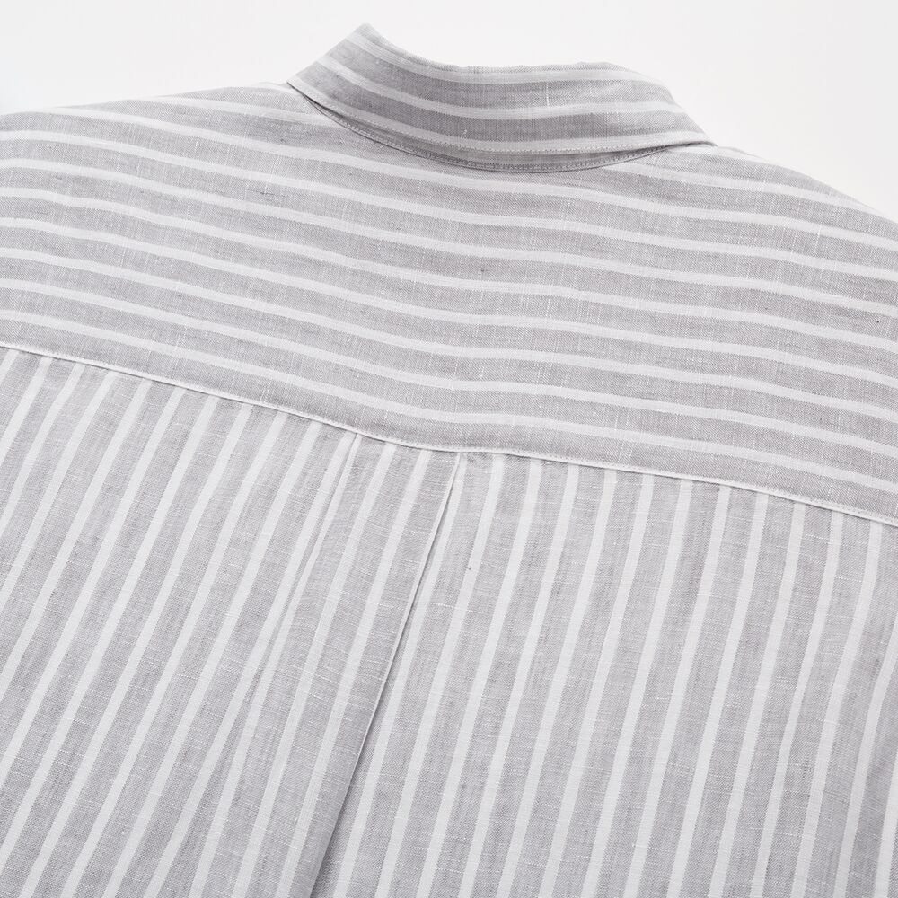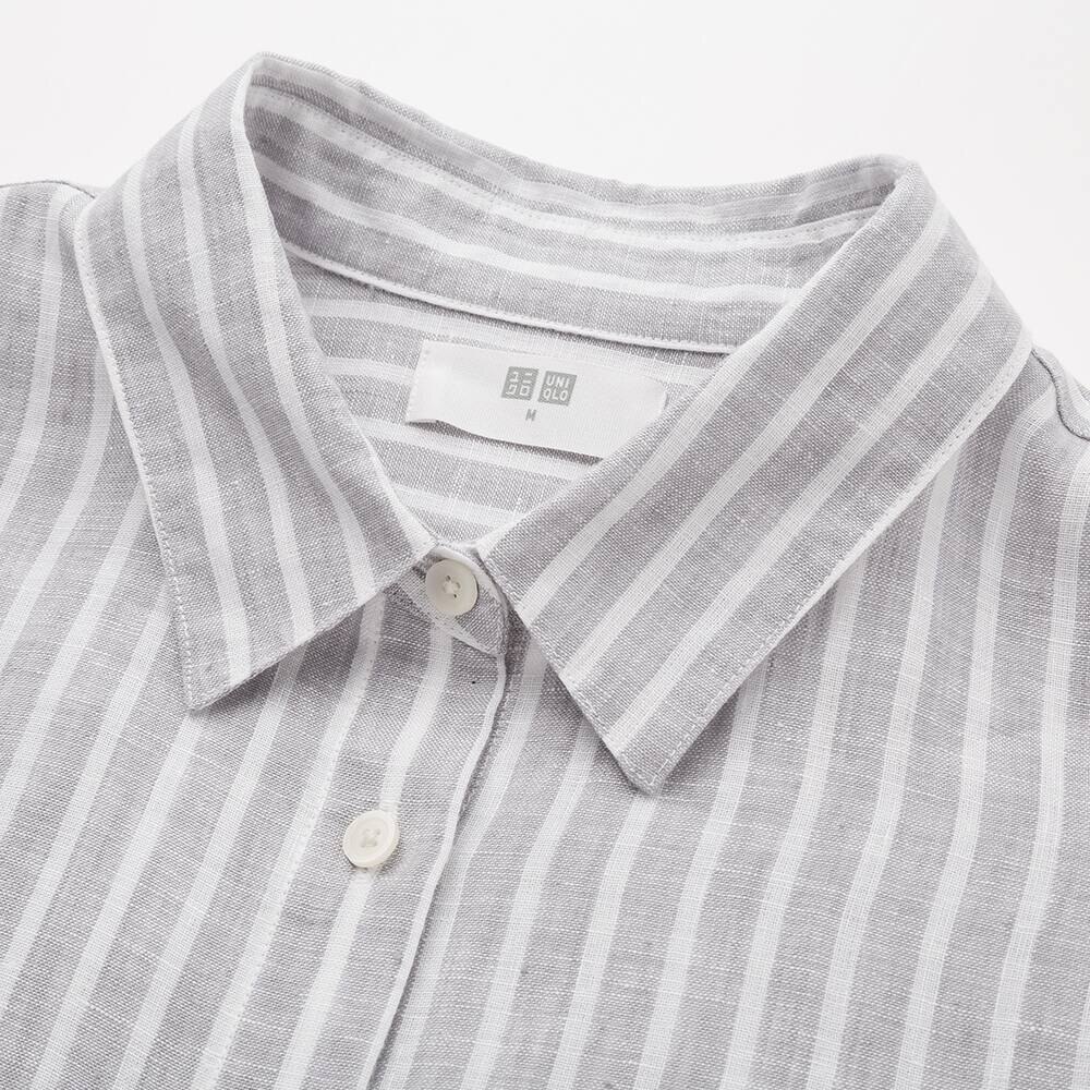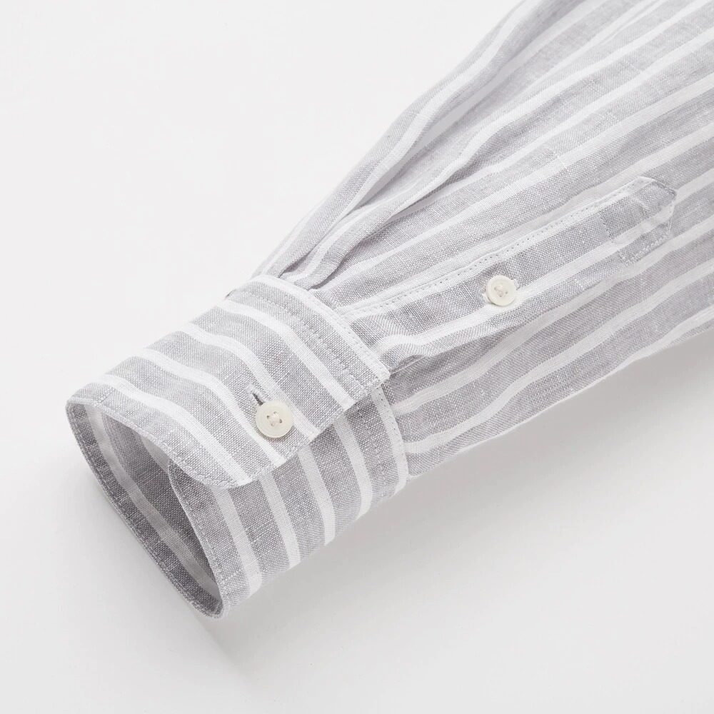 【お値下げ】新品タグ付き ユニクロ UNIQLO 長袖 プレミアムリネンストライプシャツ 極上の清涼感 上質感 プレミアムリネン100% S オレンジ