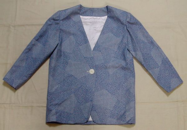 和を感じるような青系ドット柄素材のジャケットです。