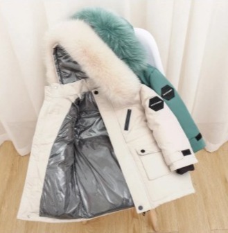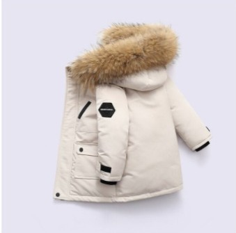 子供用の冬用ジャケット, フード付きコート, 2~12歳【Natural White】