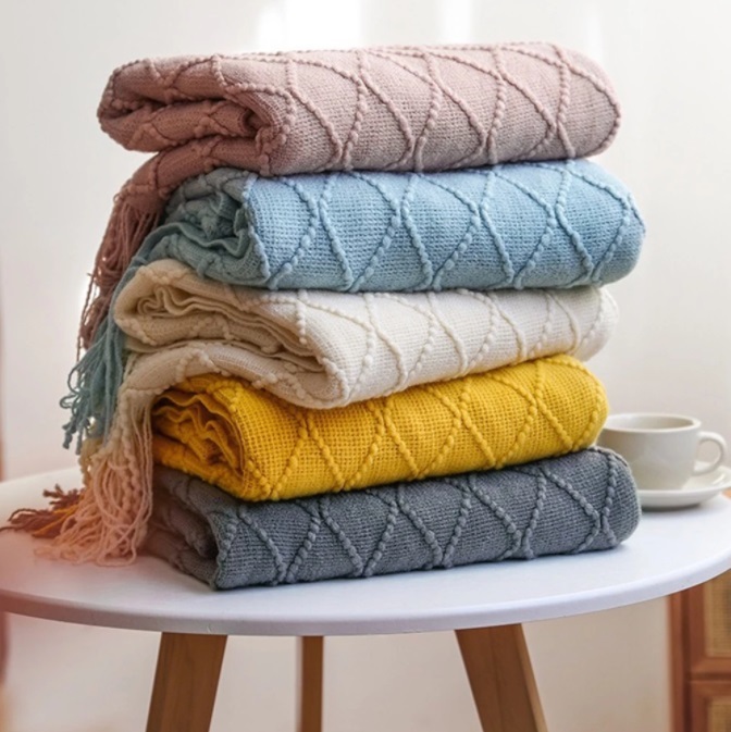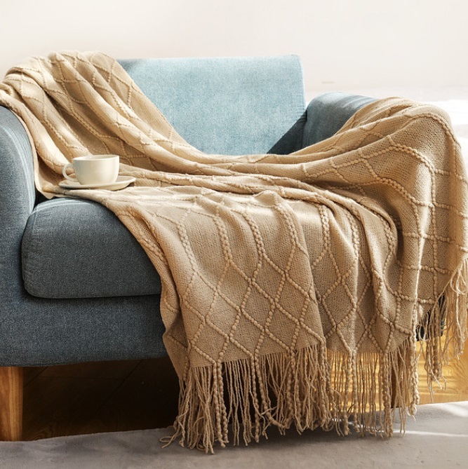 チェック柄のニットブランケット,装飾的な無地の掛け布団,ソファベッド用 127cm×172cm 【1~4】