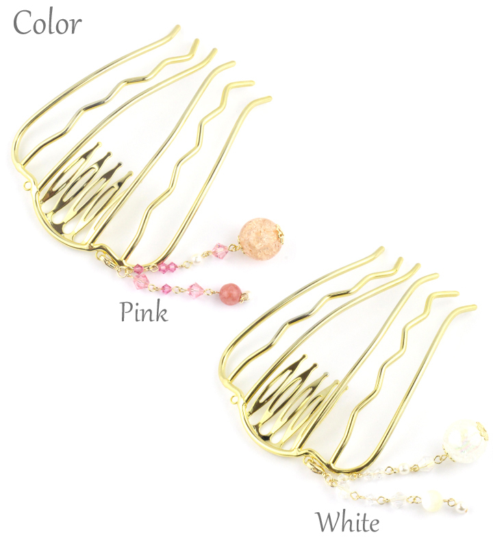サイズ | コーム全体:長さ9×7.8cm 裏コーム長さ:約3cm チャーム長さ(長い方):7.3cm(フック含める) チャーム大きいビーズ直径:1.3cm |