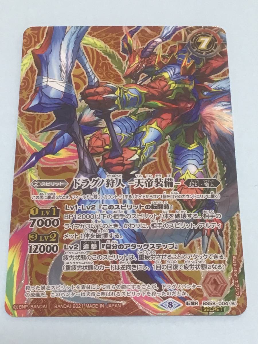 バトルスピリッツ BS58 真・転醒編 第3章 始原の鼓動 ドラグノ狩人/ドラグノ狩人 -天帝装備- 転醒R シークレットになります。
